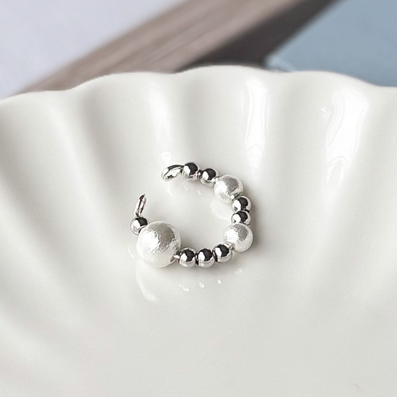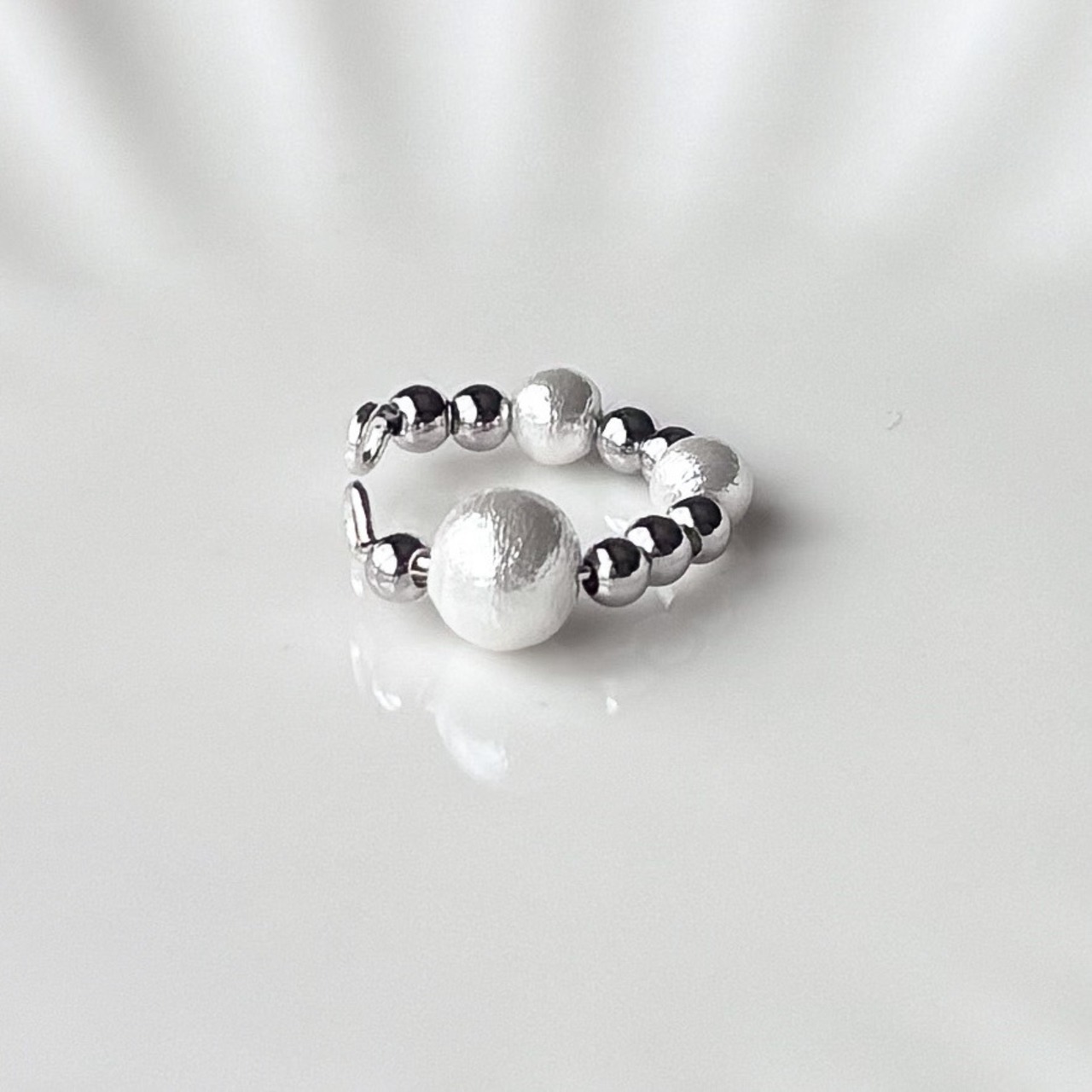 ふんわりとしたコットンパールが魅力のイヤーカフ。