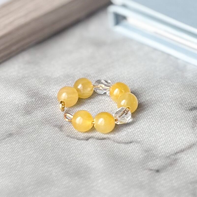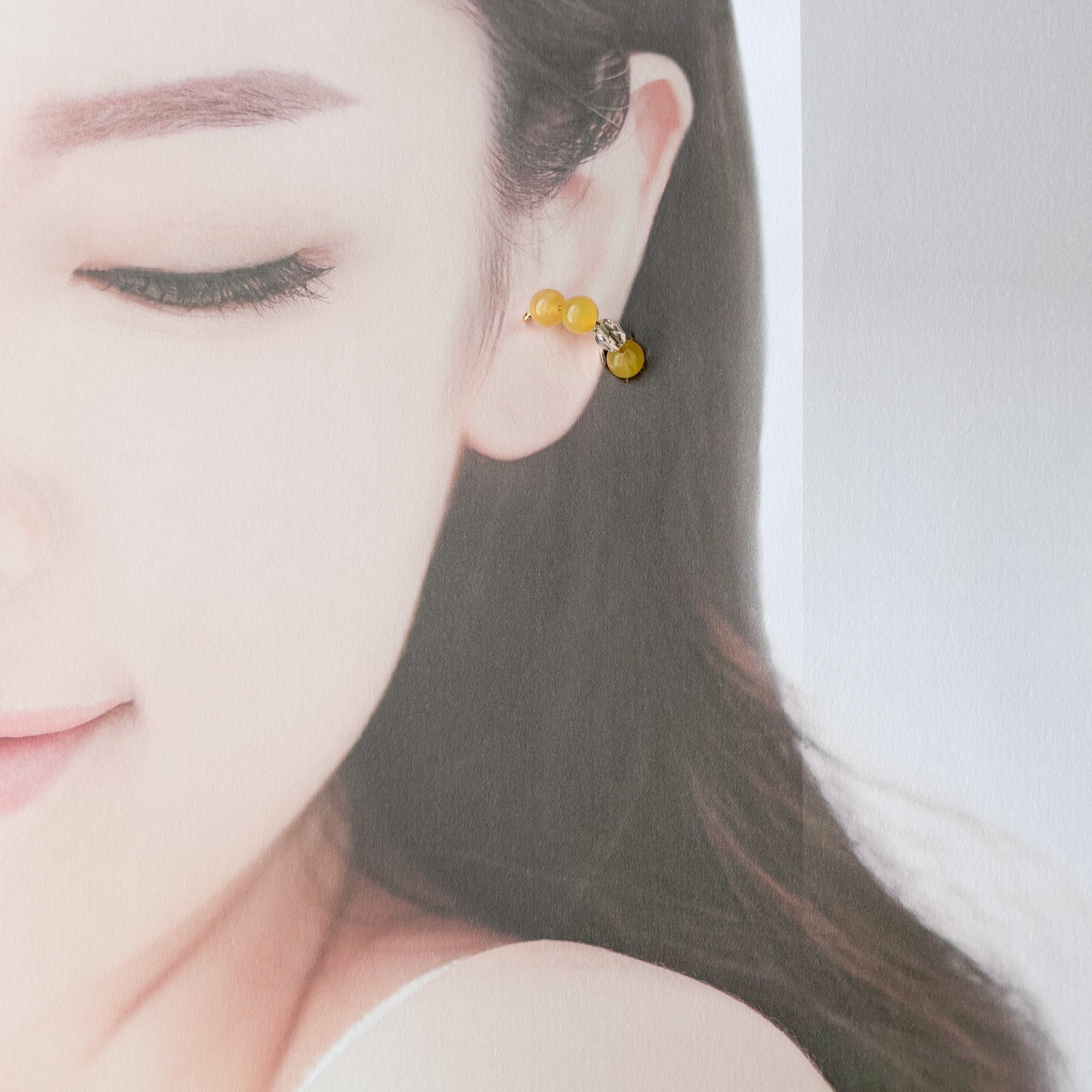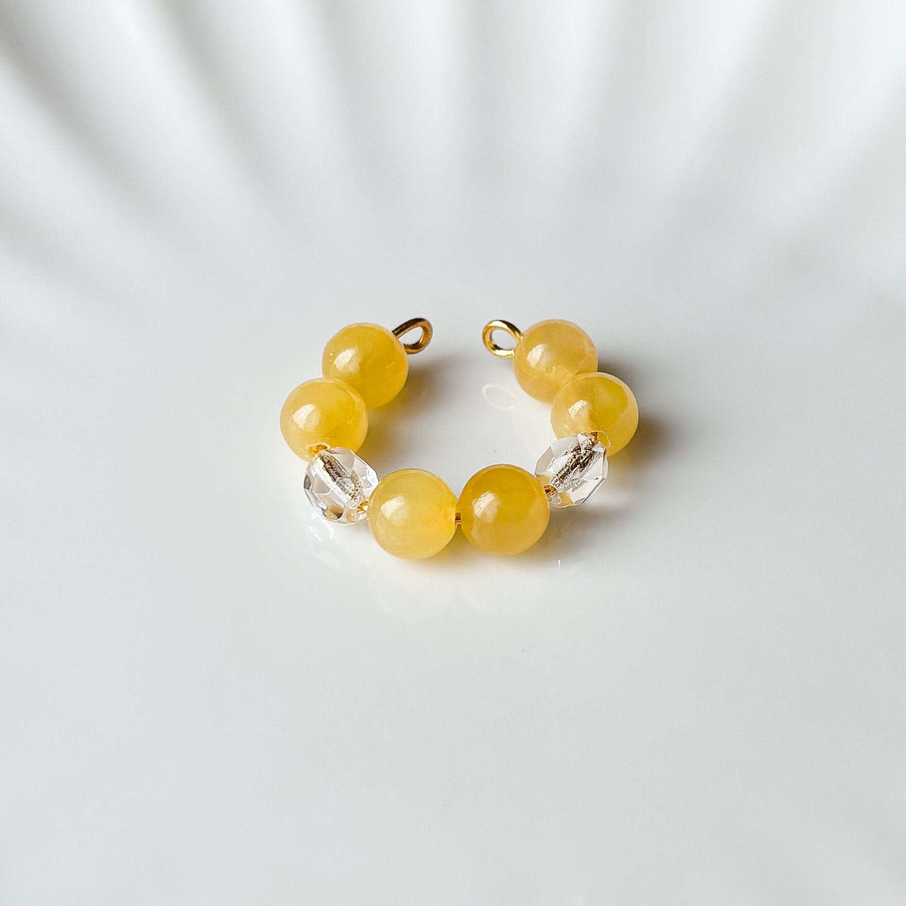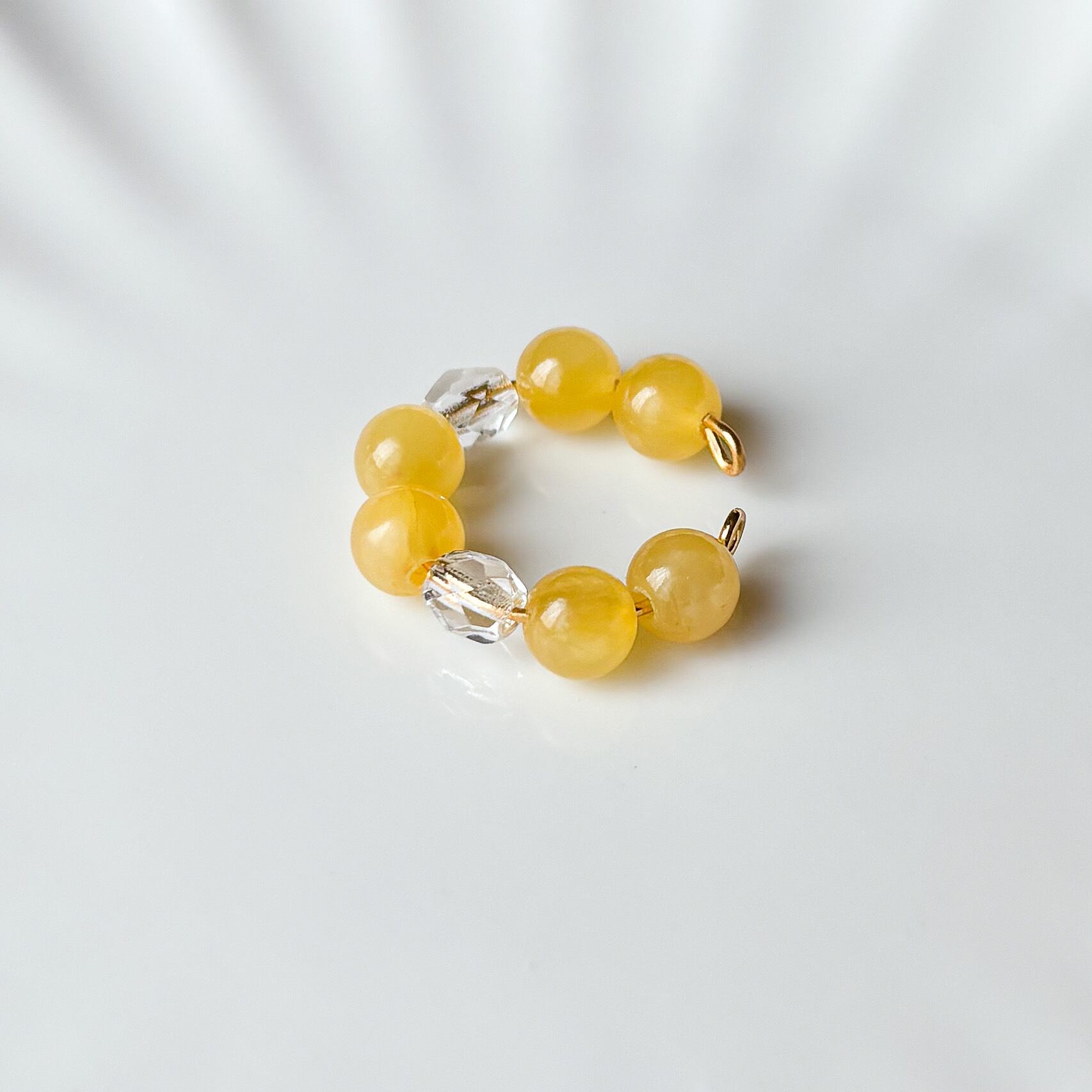 イエロージェイドとクリアビーズが上品なイヤーカフ。