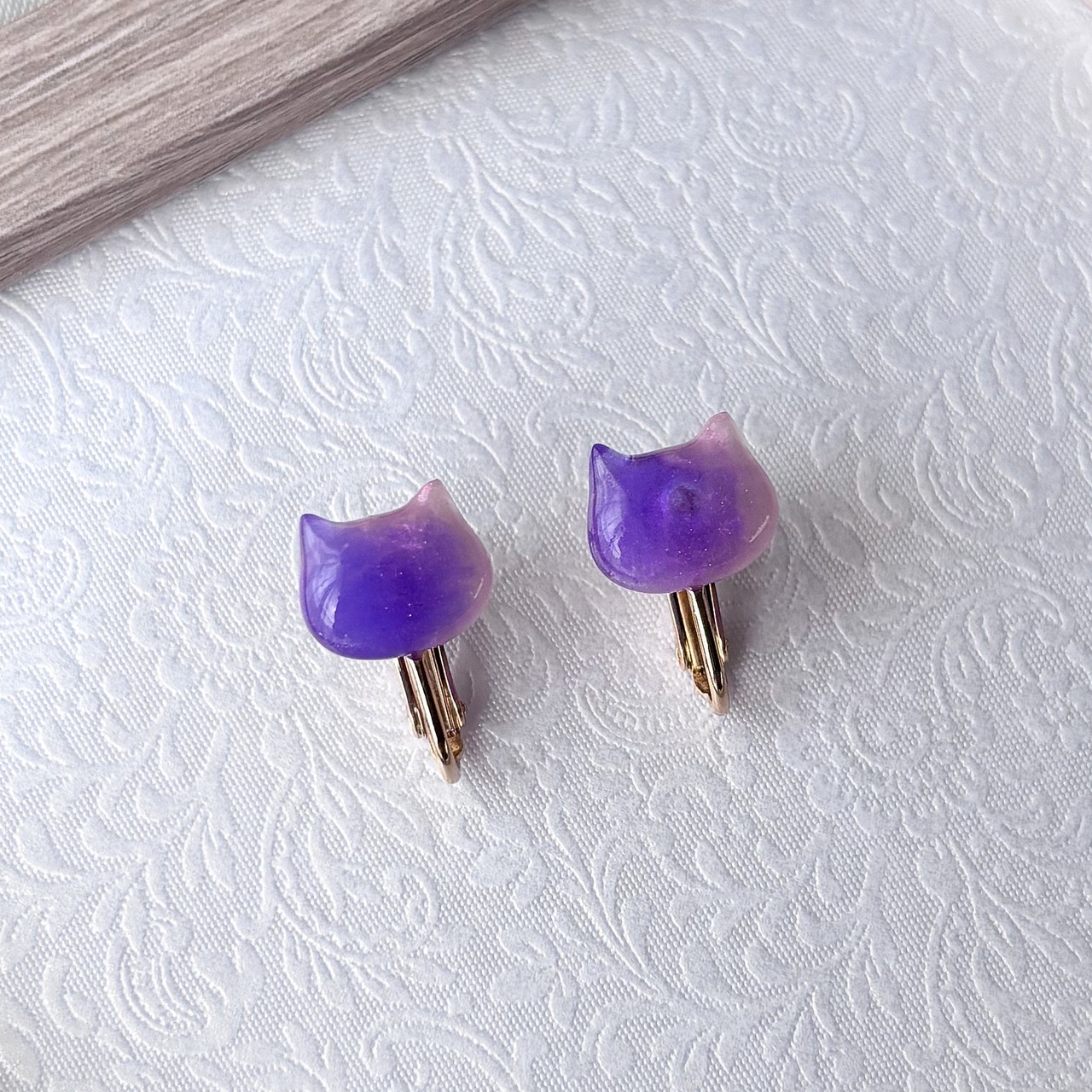 パープルとピンクのグラデーションがかわいいネコピアス。