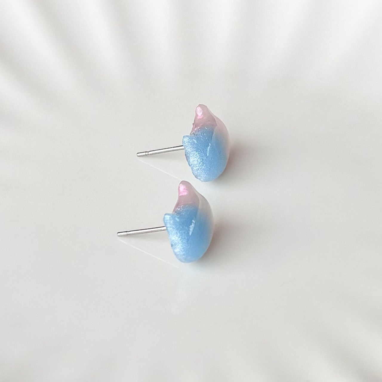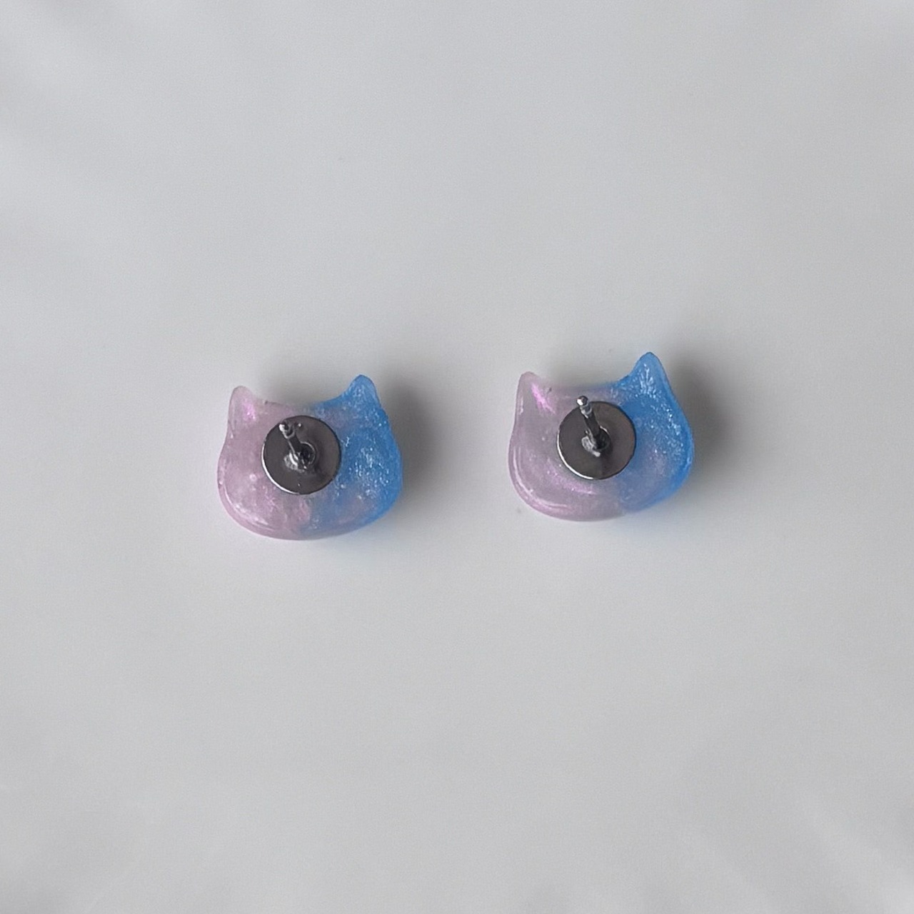 ブルーとピンクのグラデーションがかわいいネコピアス。