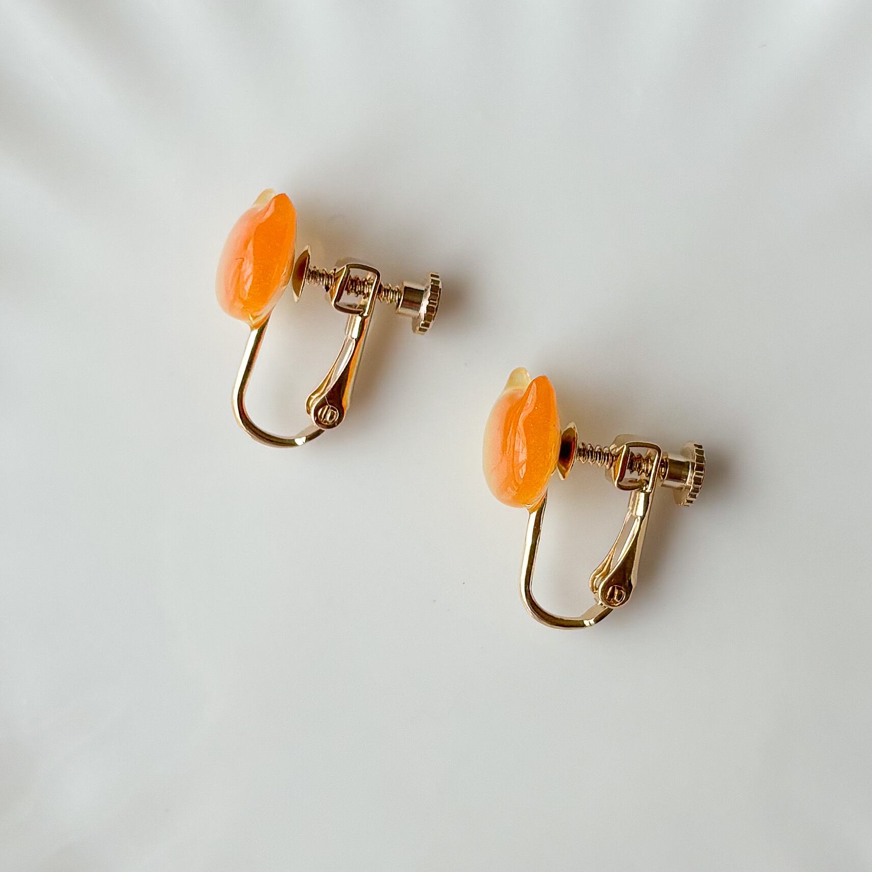 オレンジとイエローのグラデーションがかわいいネコイヤリング。