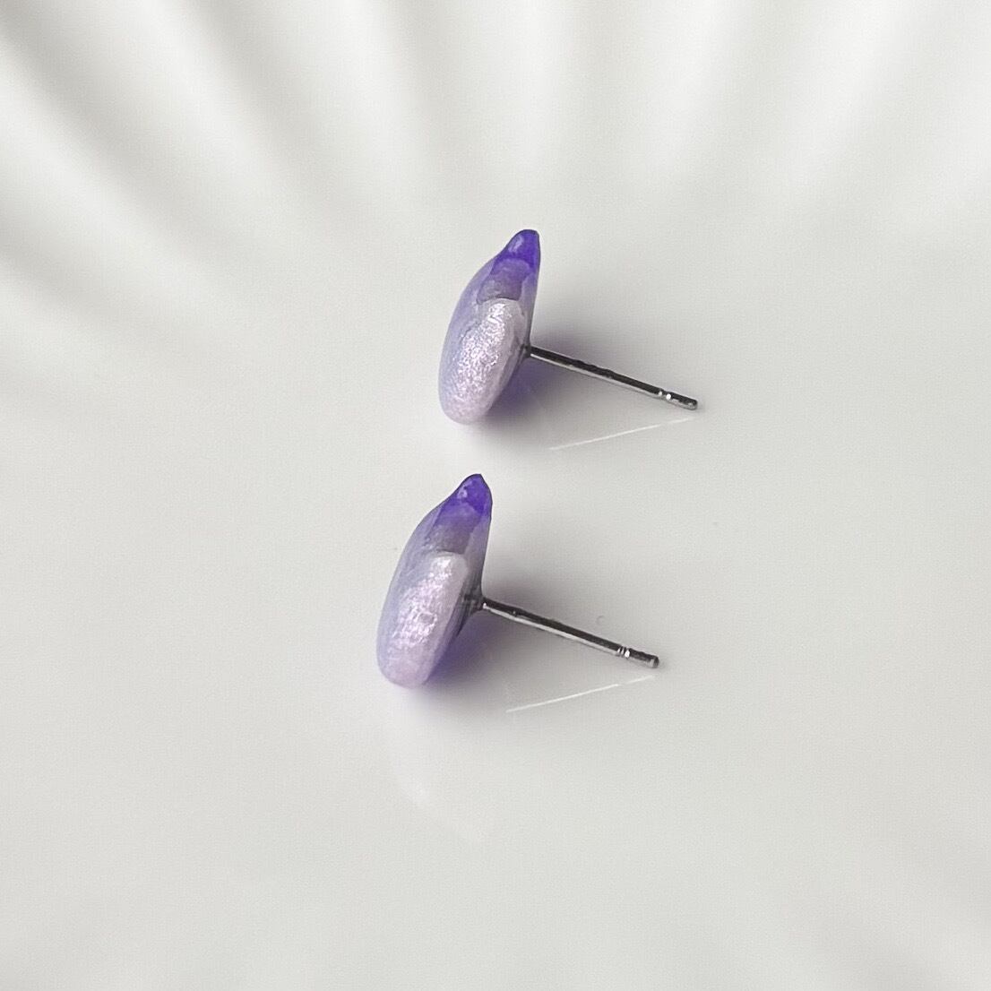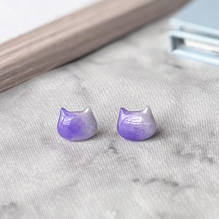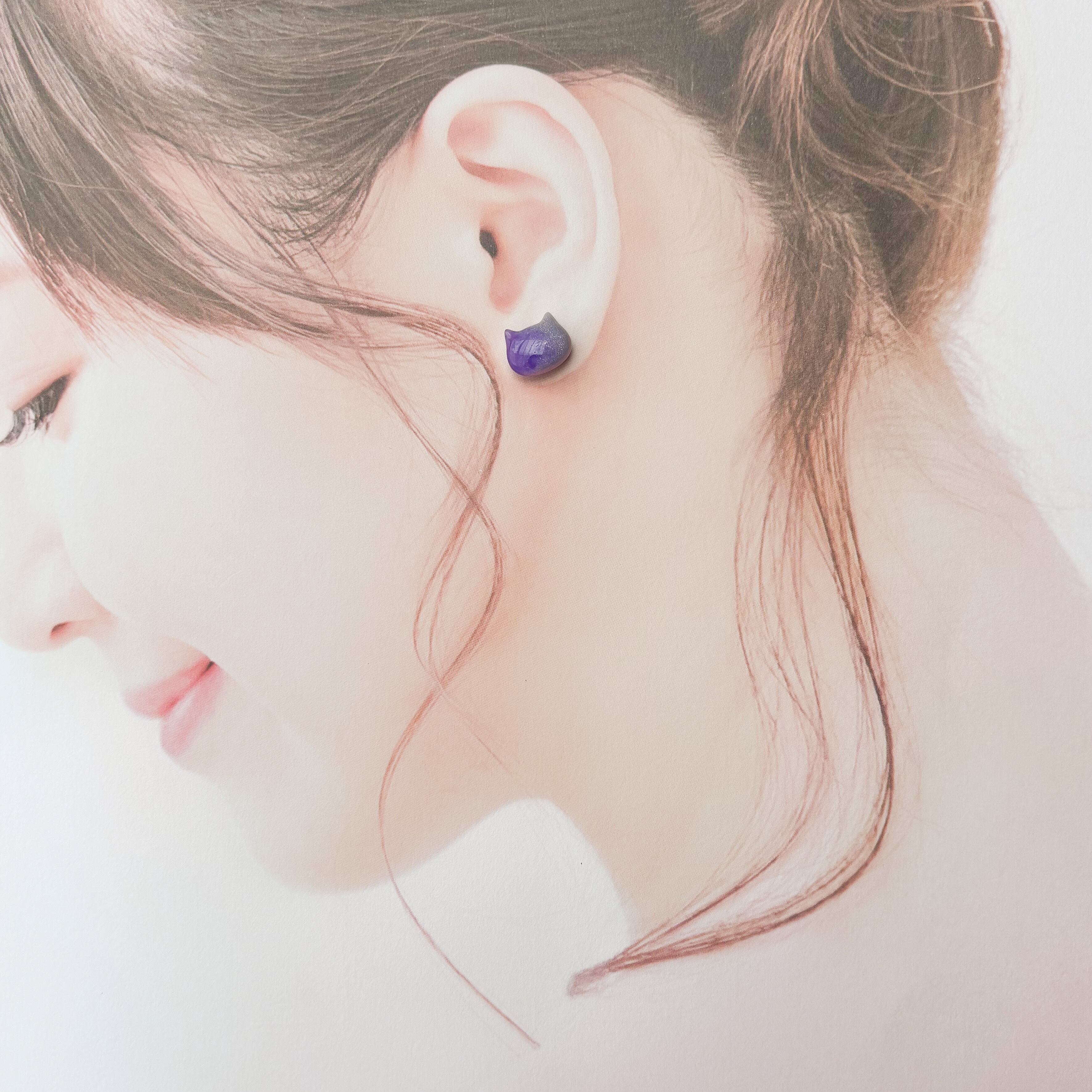 パープルのグラデーションがキラキラかわいいネコピアス。