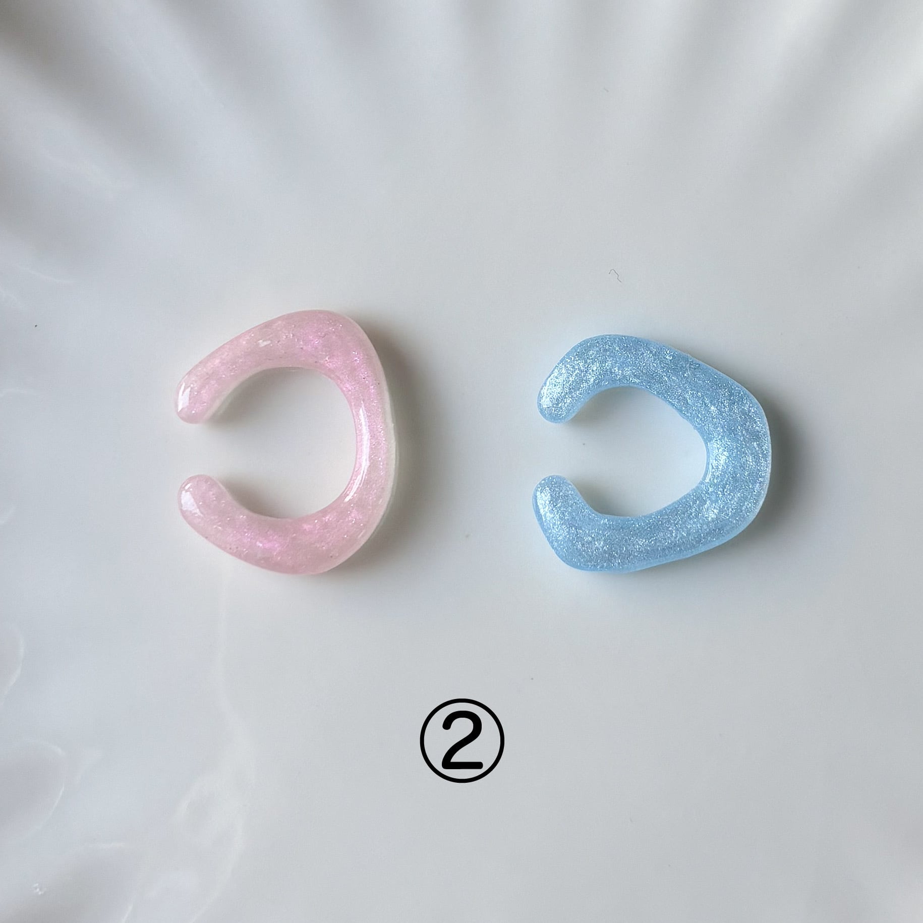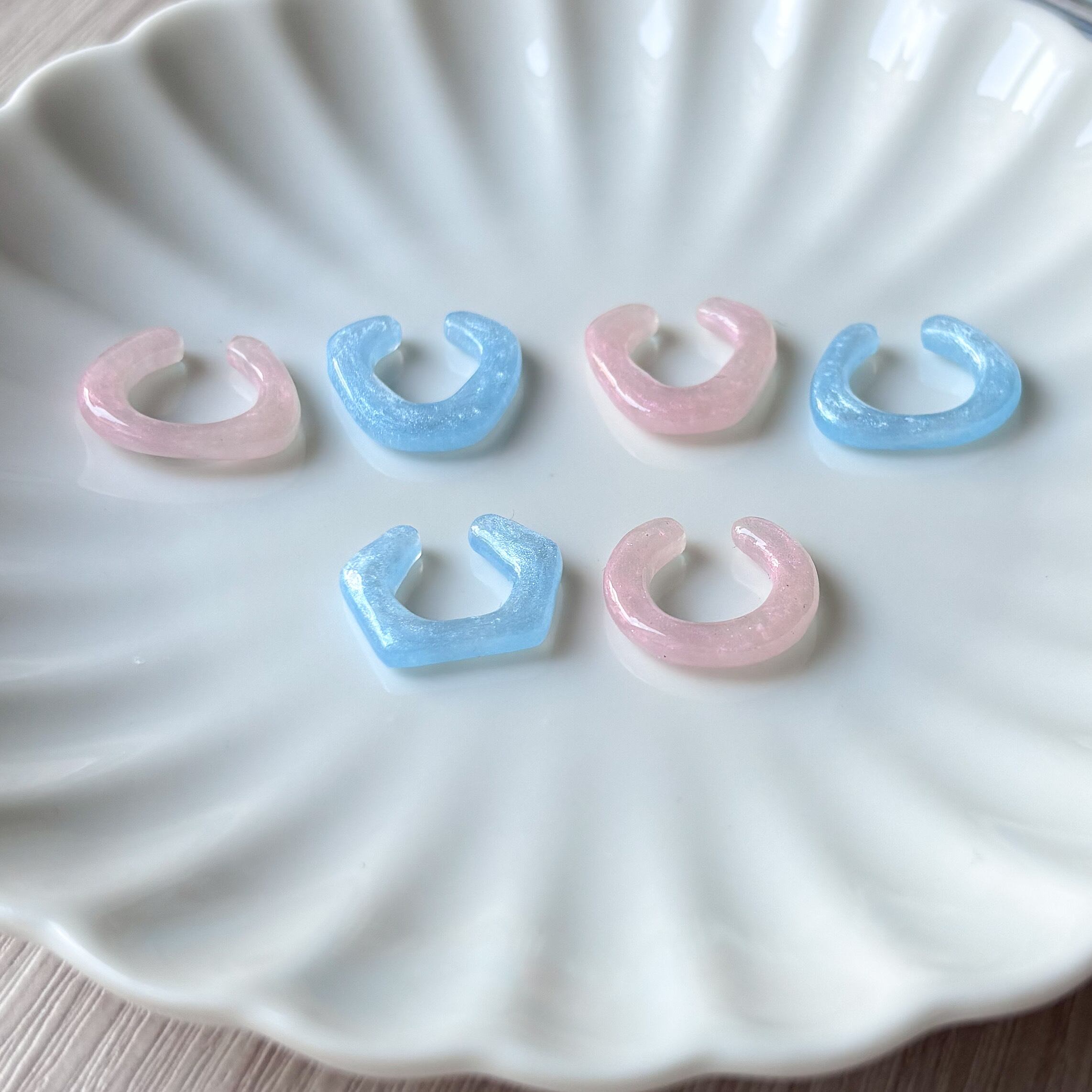 シンプルなブルーとピンクのイヤーカフセット。