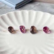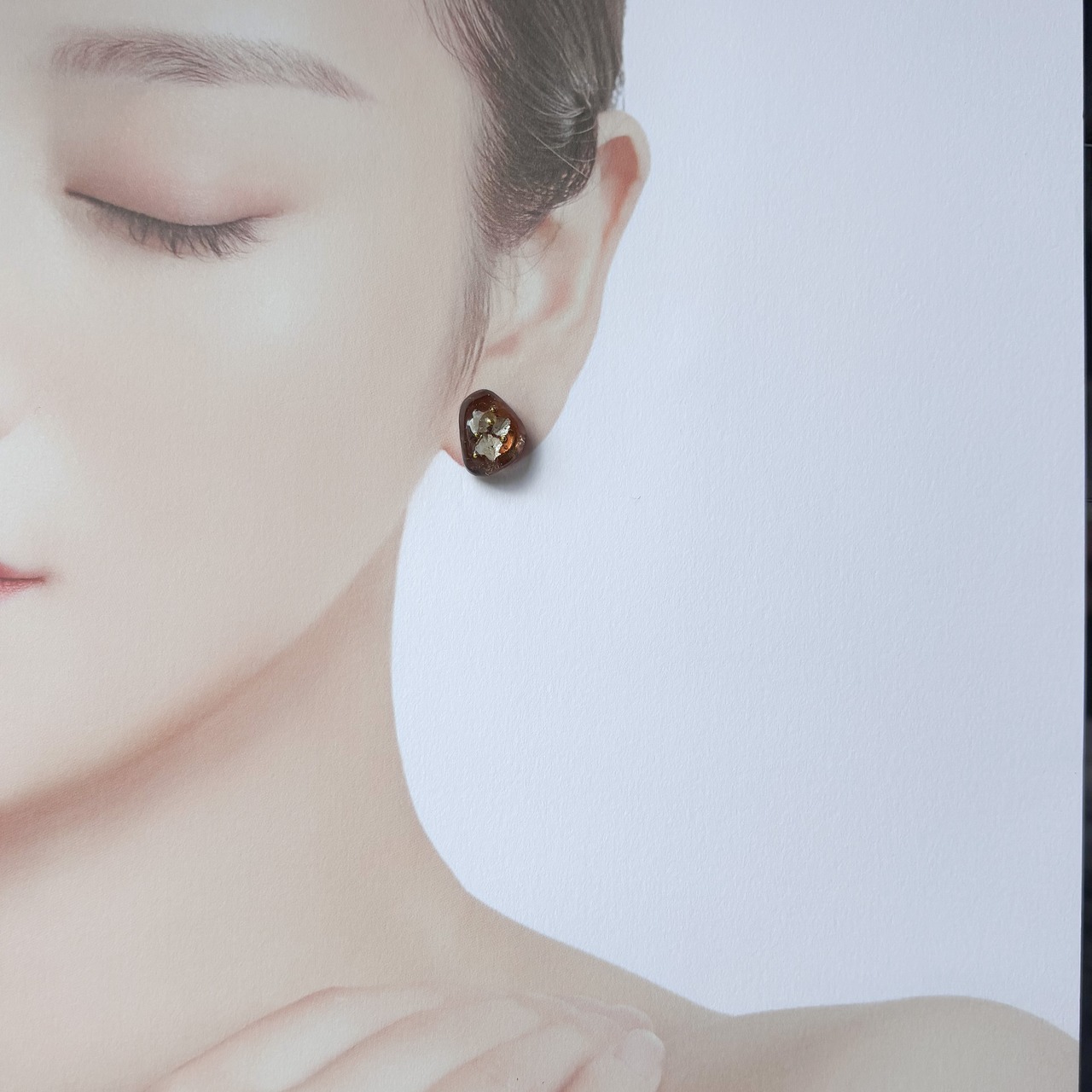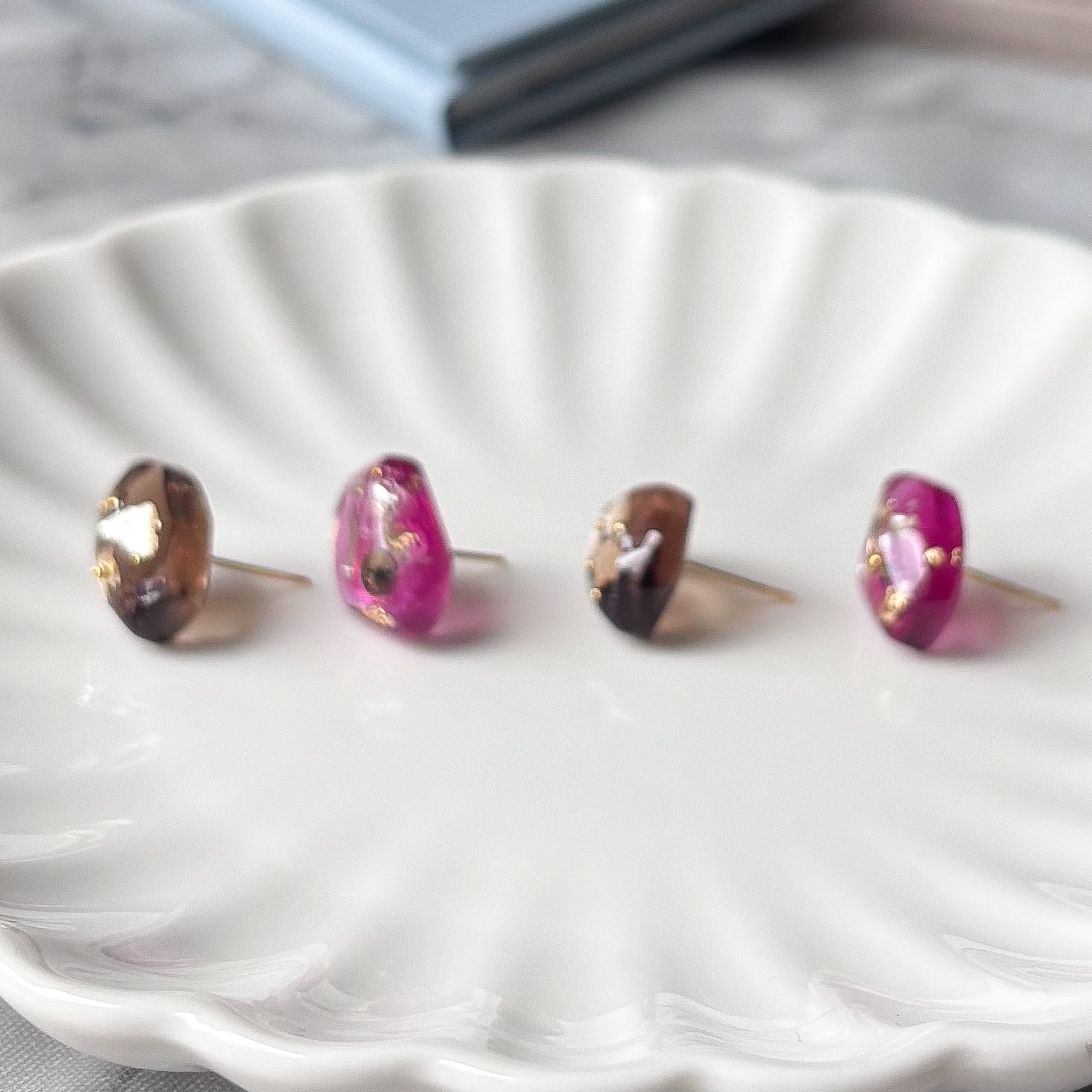 ピンクとブラウンに、金箔などのゴールドパーツでデザインした、おしゃれピアス。