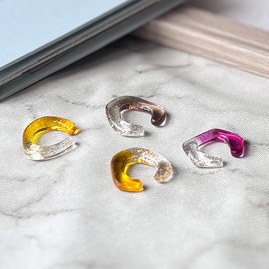 また、レジン作品のでこぼこ、気泡、はみ出しなどがある場合もありますが、ハンドメイドならではのデザインとしてお楽しみいただけると幸いです。