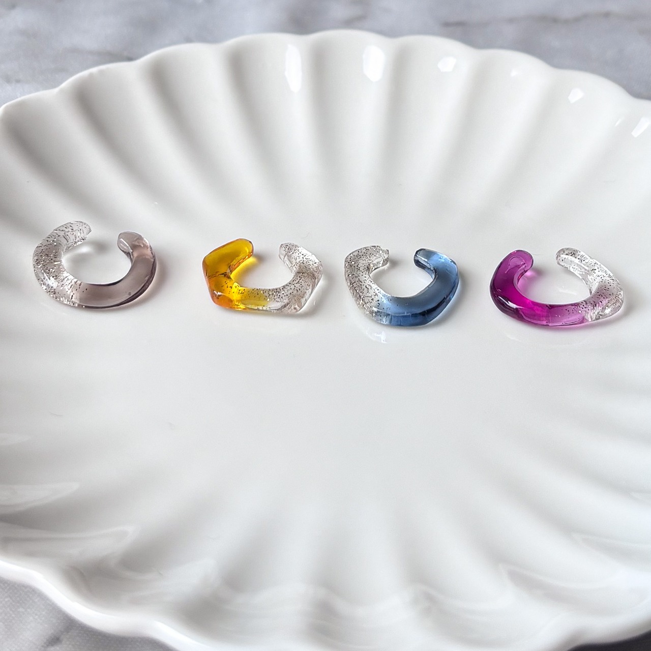 ツートンカラー ブルー ブラウン イエロー ピンク ゴールド イヤーカフ 4個 セット 重ね付け 小さめ【614】