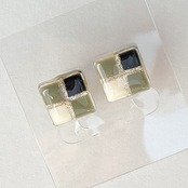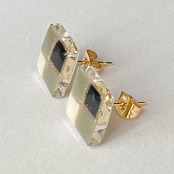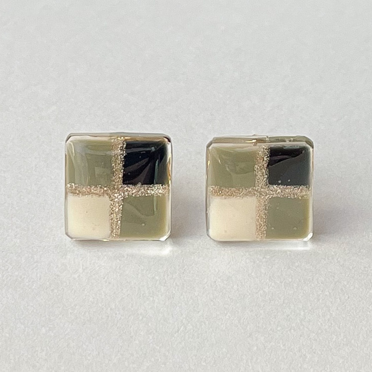 ピアス/四角/スクエア/チェック/カーキ/グリーン/ゴールド/白/黒