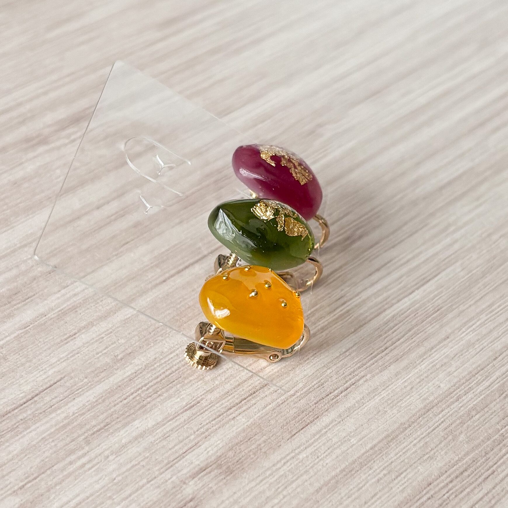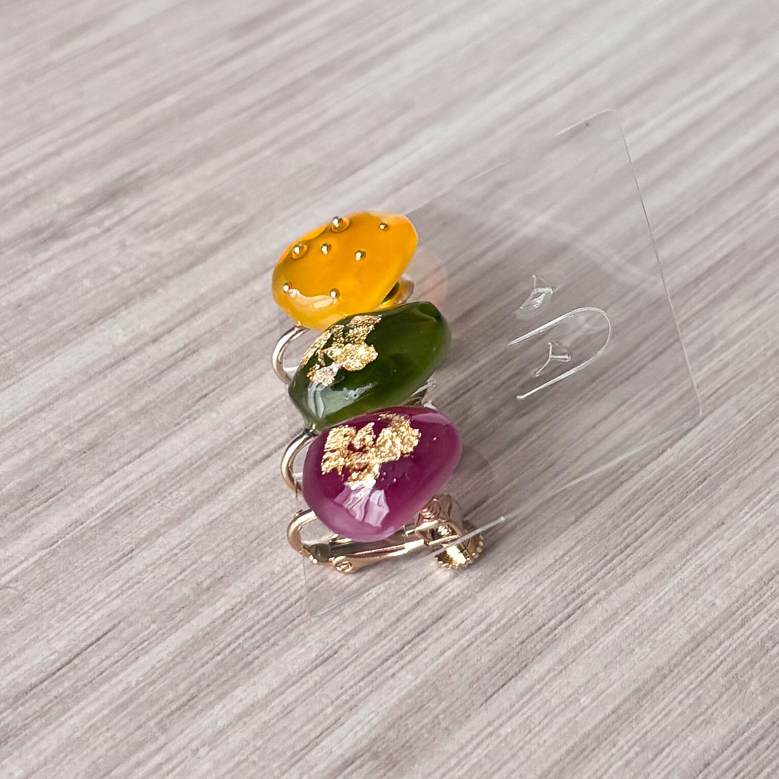 レジン作品のでこぼこ、気泡、はみ出しなどがある場合もありますが、ハンドメイドならではのデザインとしてお楽しみいただけると幸いです。