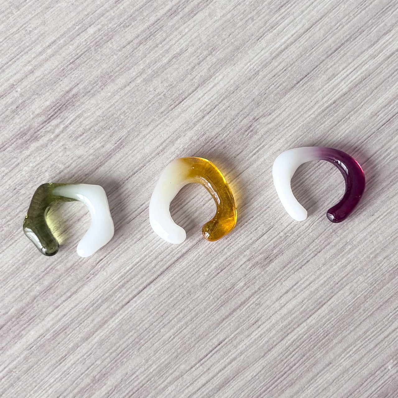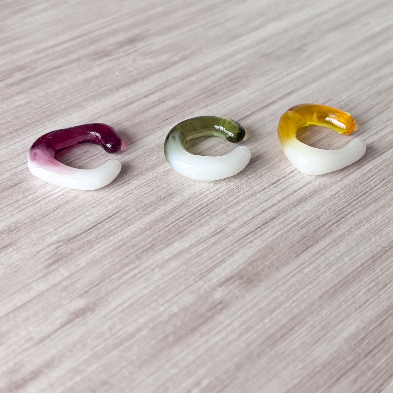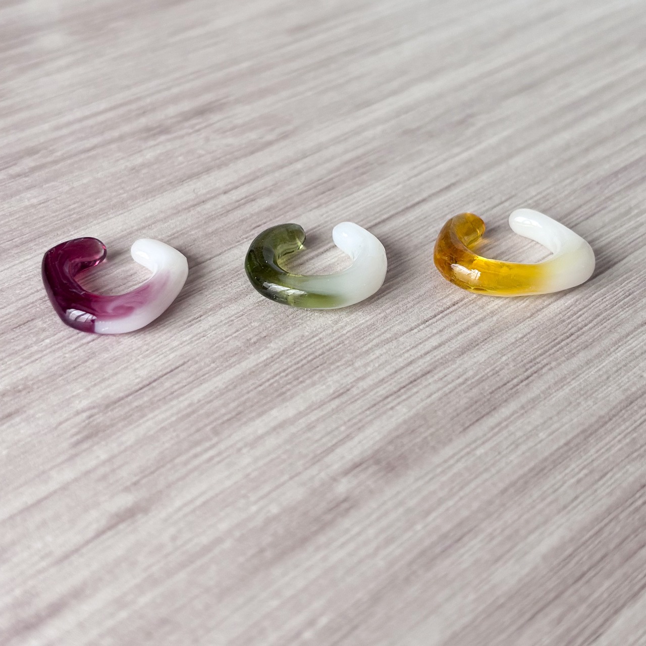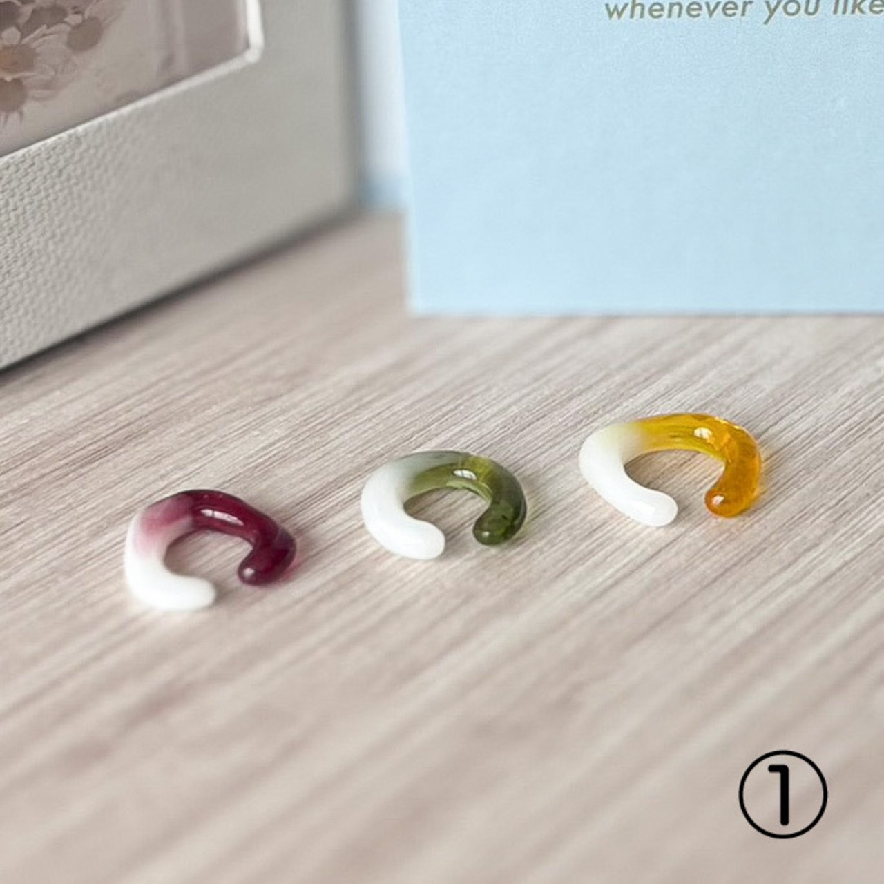 イヤーカフ/イヤカフ/イヤーカフ セット/3個セット/クリスマス イヤーカフ/グリーン イヤーカフ/レッド イヤーカフ/イエロー イヤーカフ/ホワイト イヤーカフ/緑 赤 黄色 白/ツートンカラー/重ね付け イヤーカフ/小ぶり イヤーカフ/小さめ イヤーカフ/丸 イヤーカフ/シンプル イヤーカフ/大人かわいい/デイリーユース/お出かけ