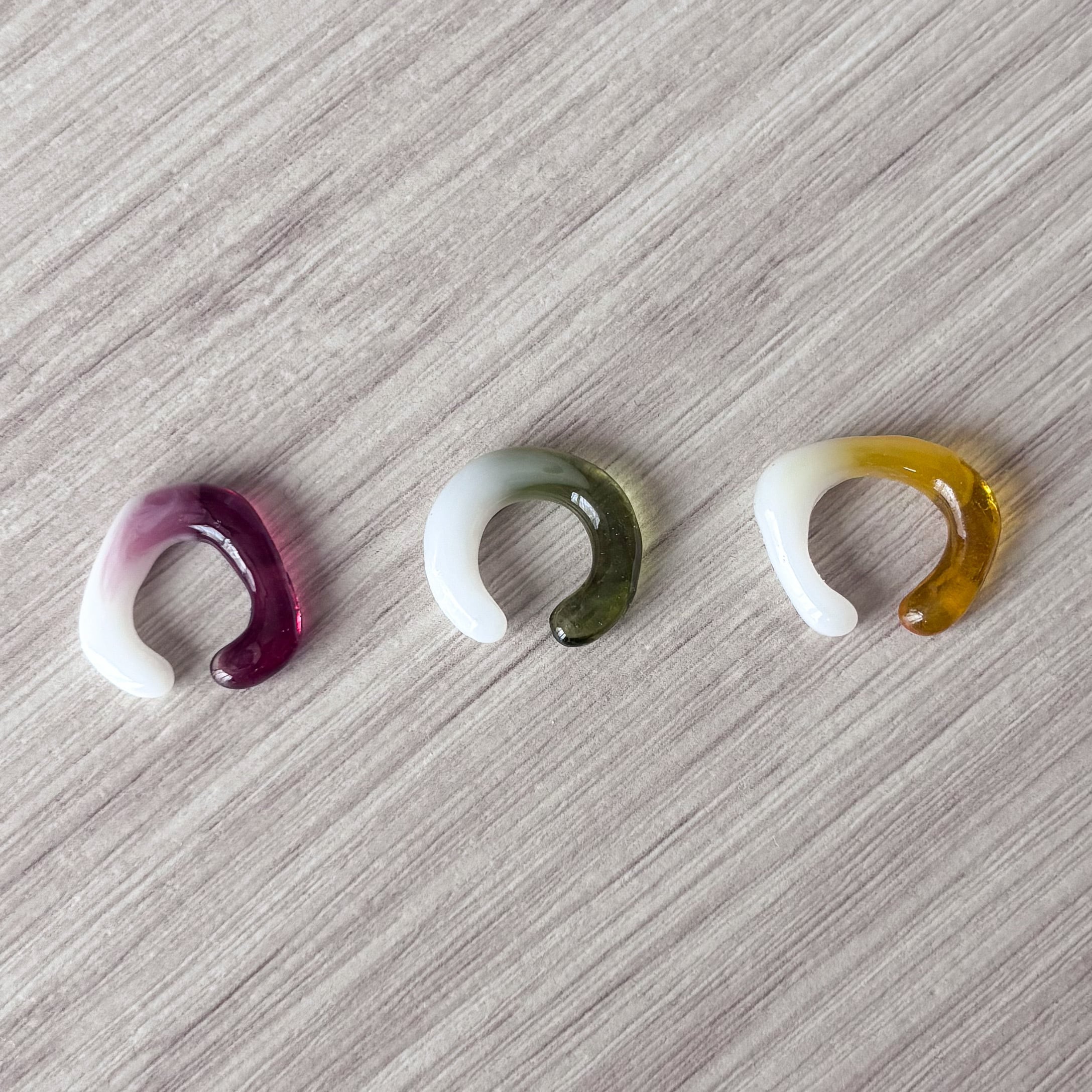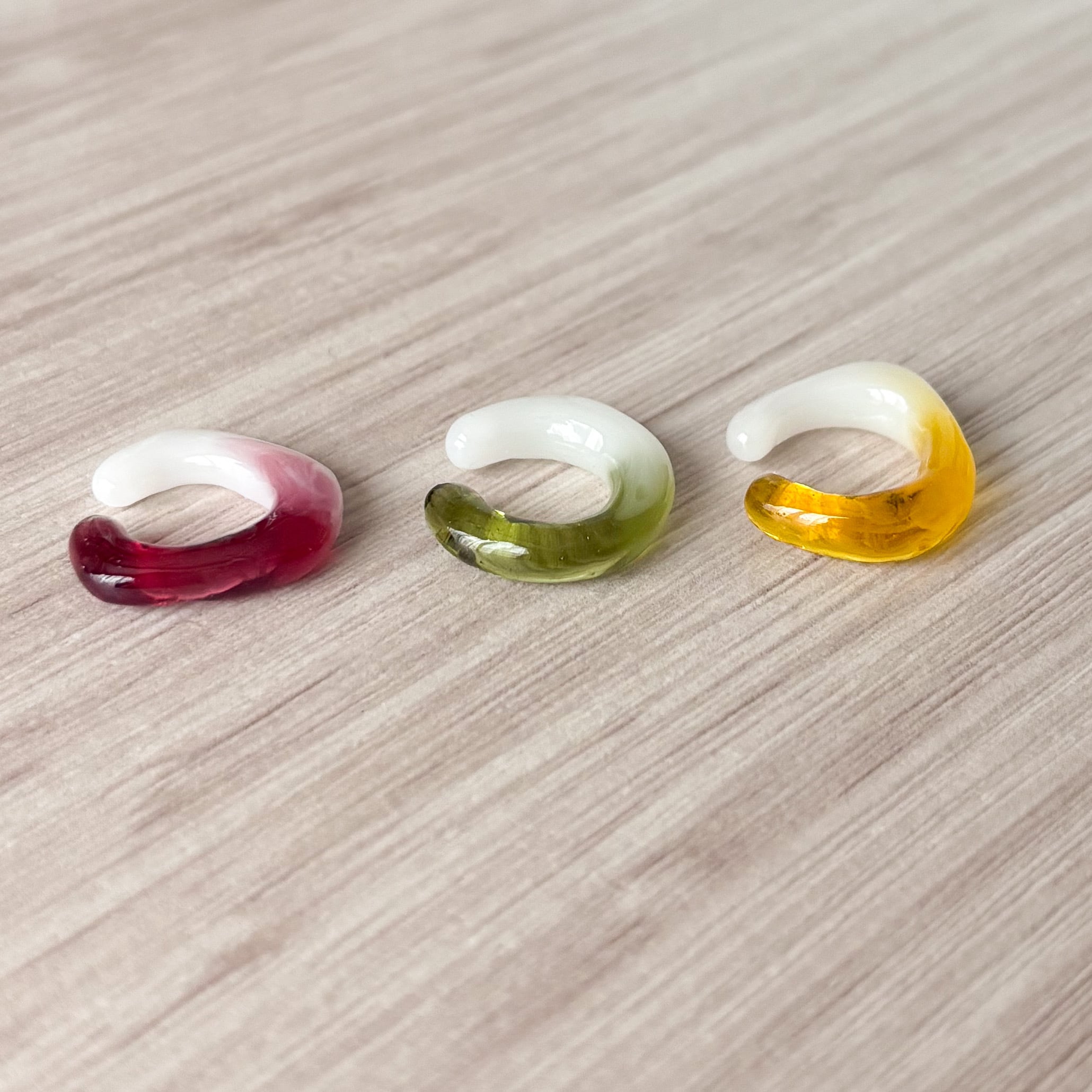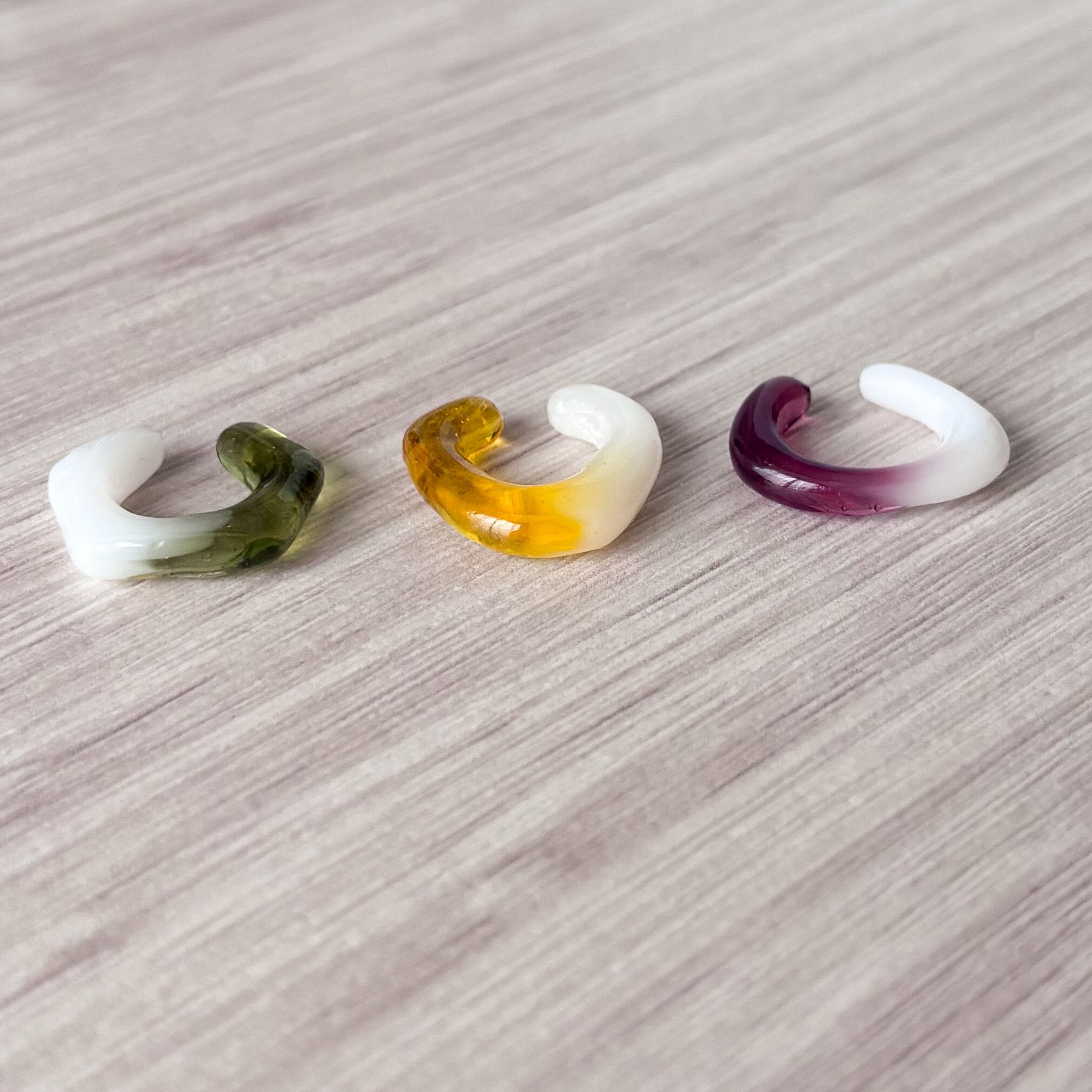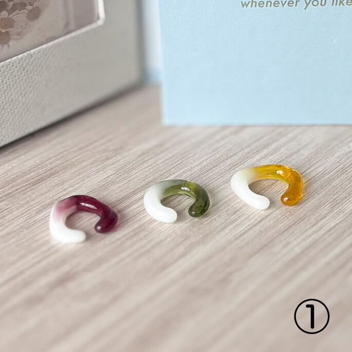 クリスマスカラーのイヤーカフ3個セット。