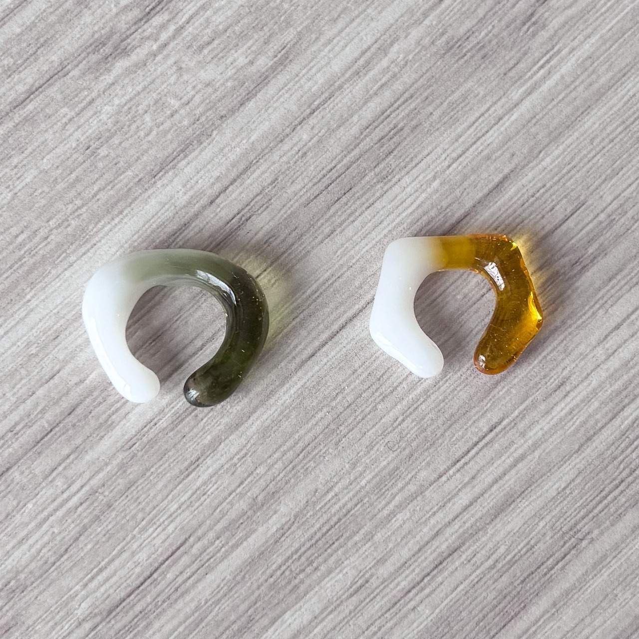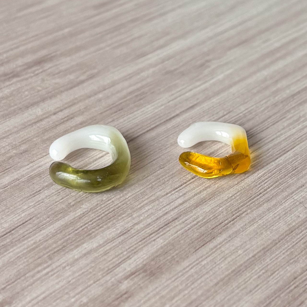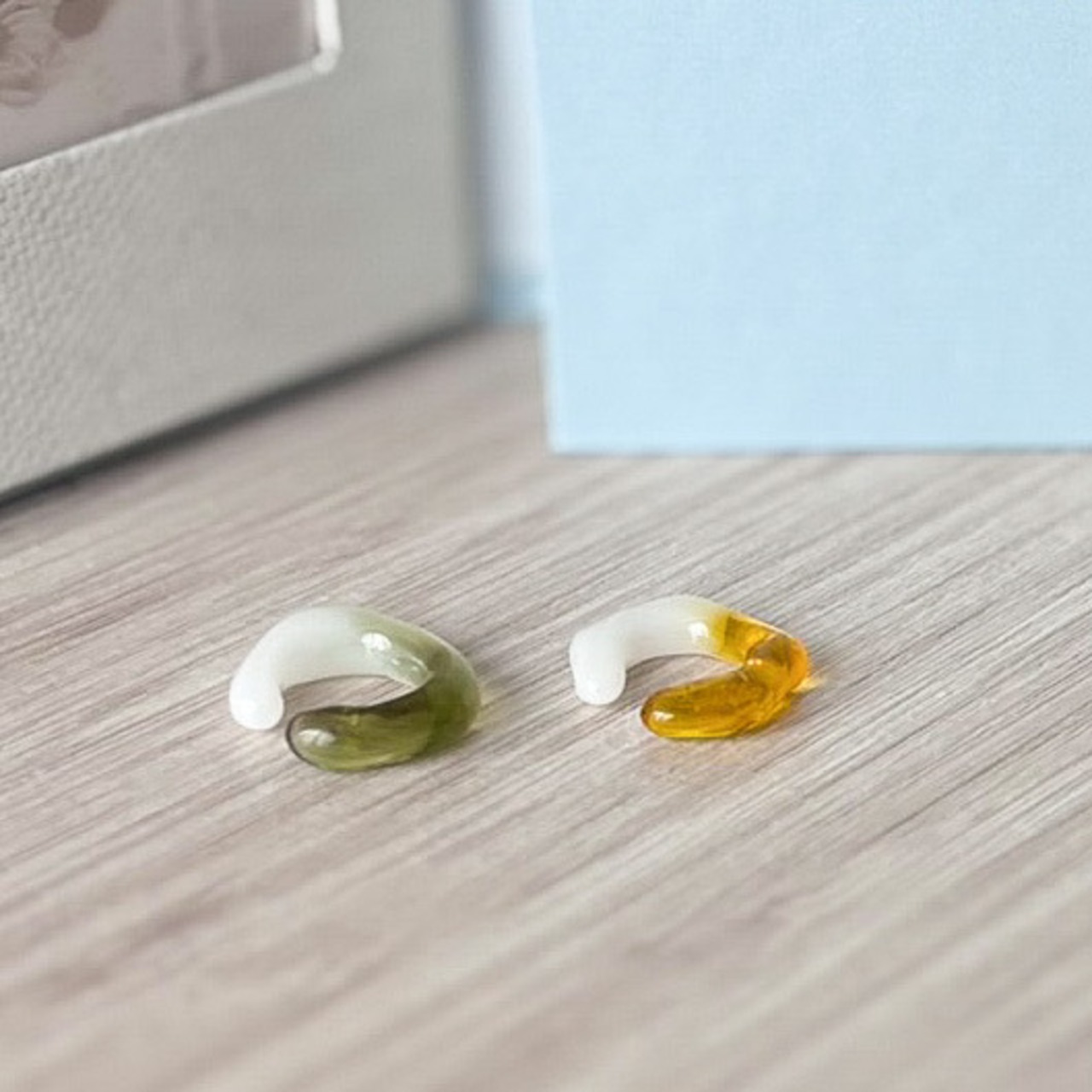 明るいイエロー、爽やかなグリーンとホワイト組み合わせた、使いやすいシンプルなイヤーカフ(イヤカフ)2個セットです。