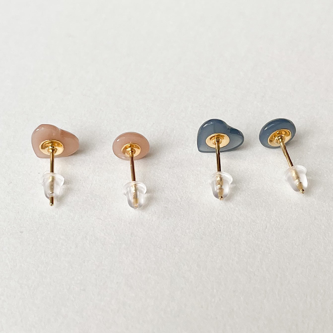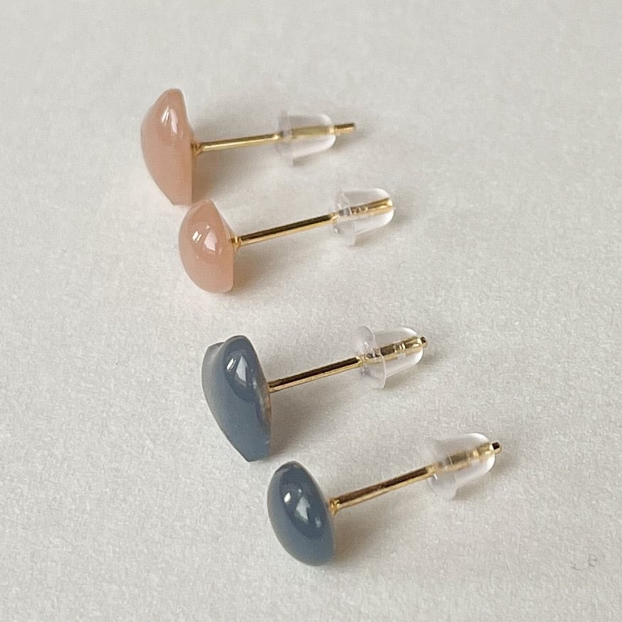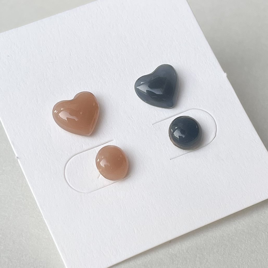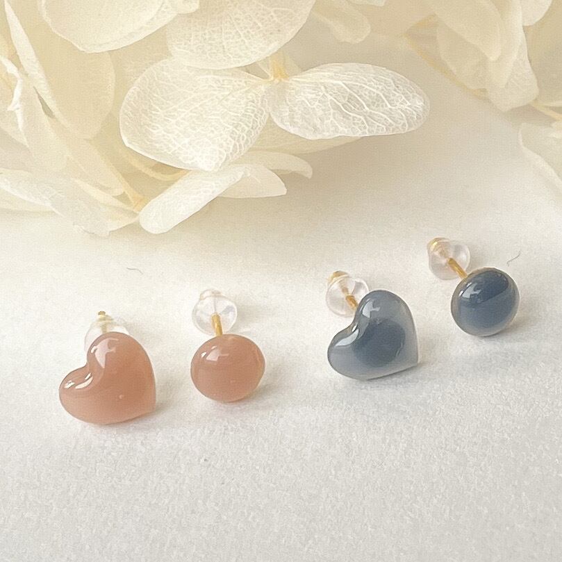 ココアブラウンとインディゴブルーの上品なカラーが組み合わさった、ハートモチーフのプチピアス。