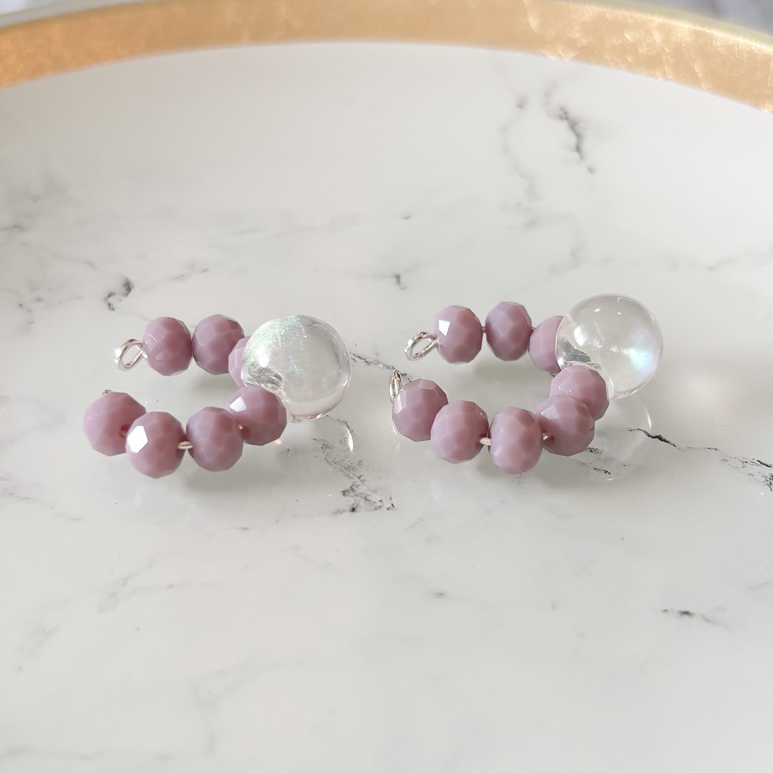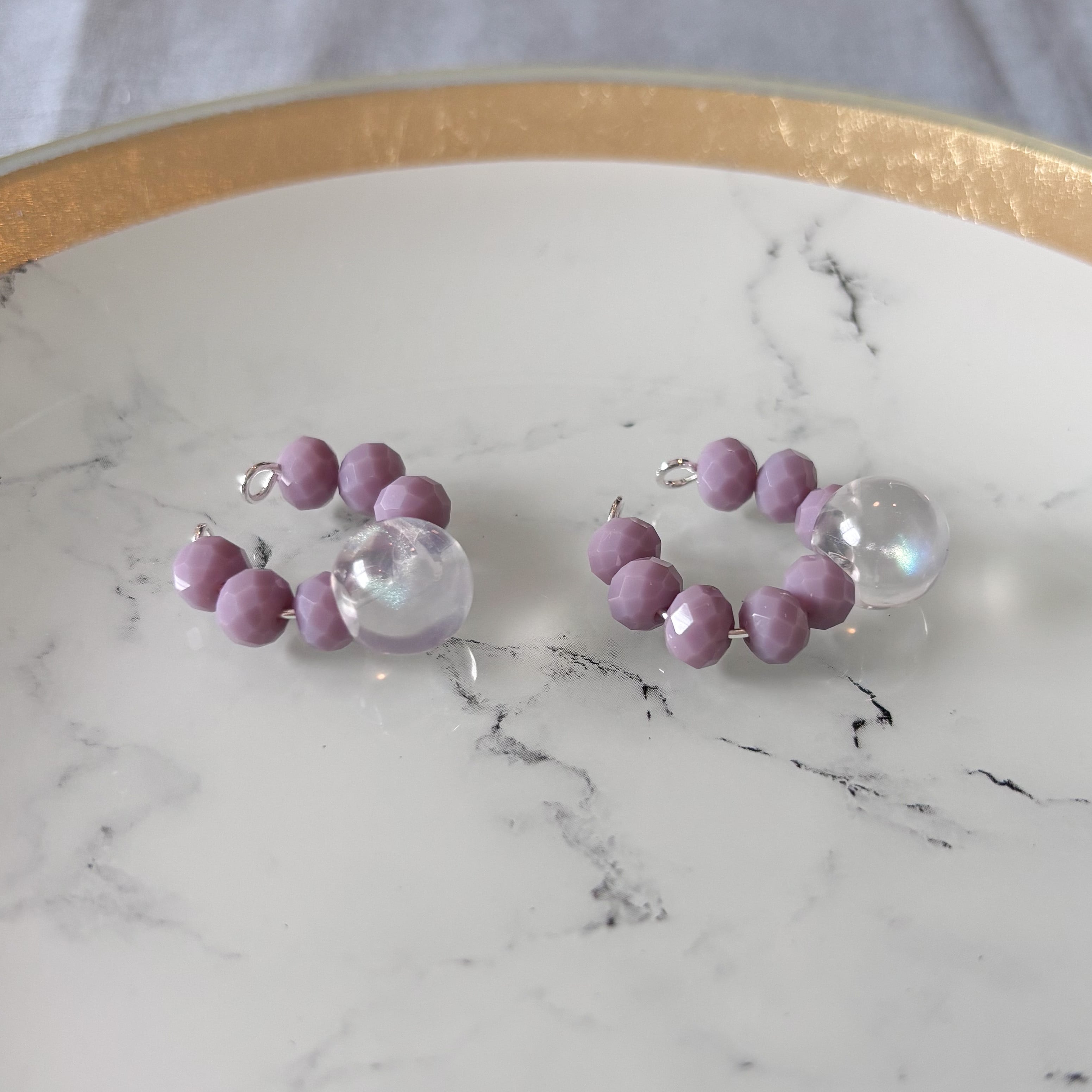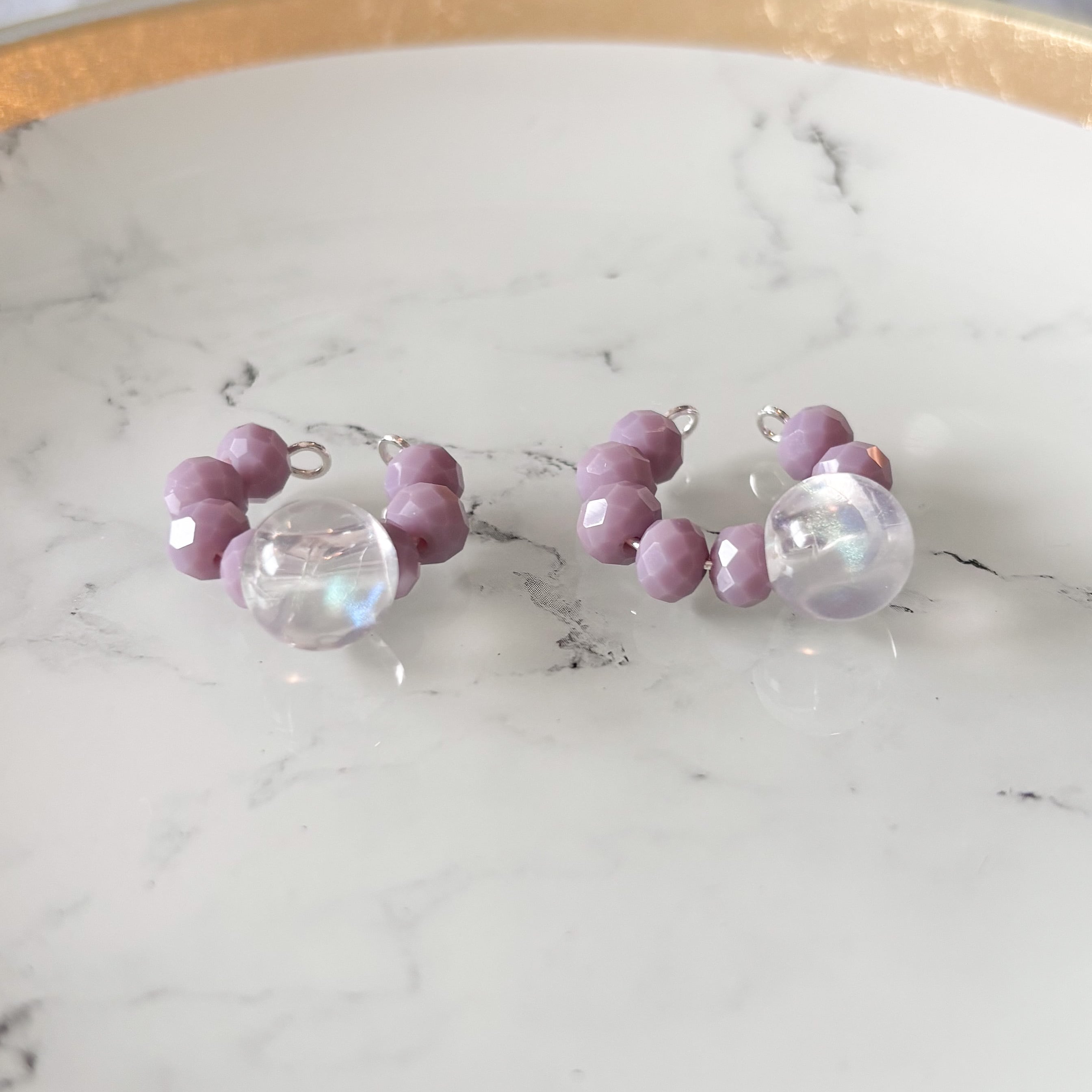 パープルのガラスビーズとクリスタルの大きなビーズを組み合わせた、かわいいイヤーカフ。