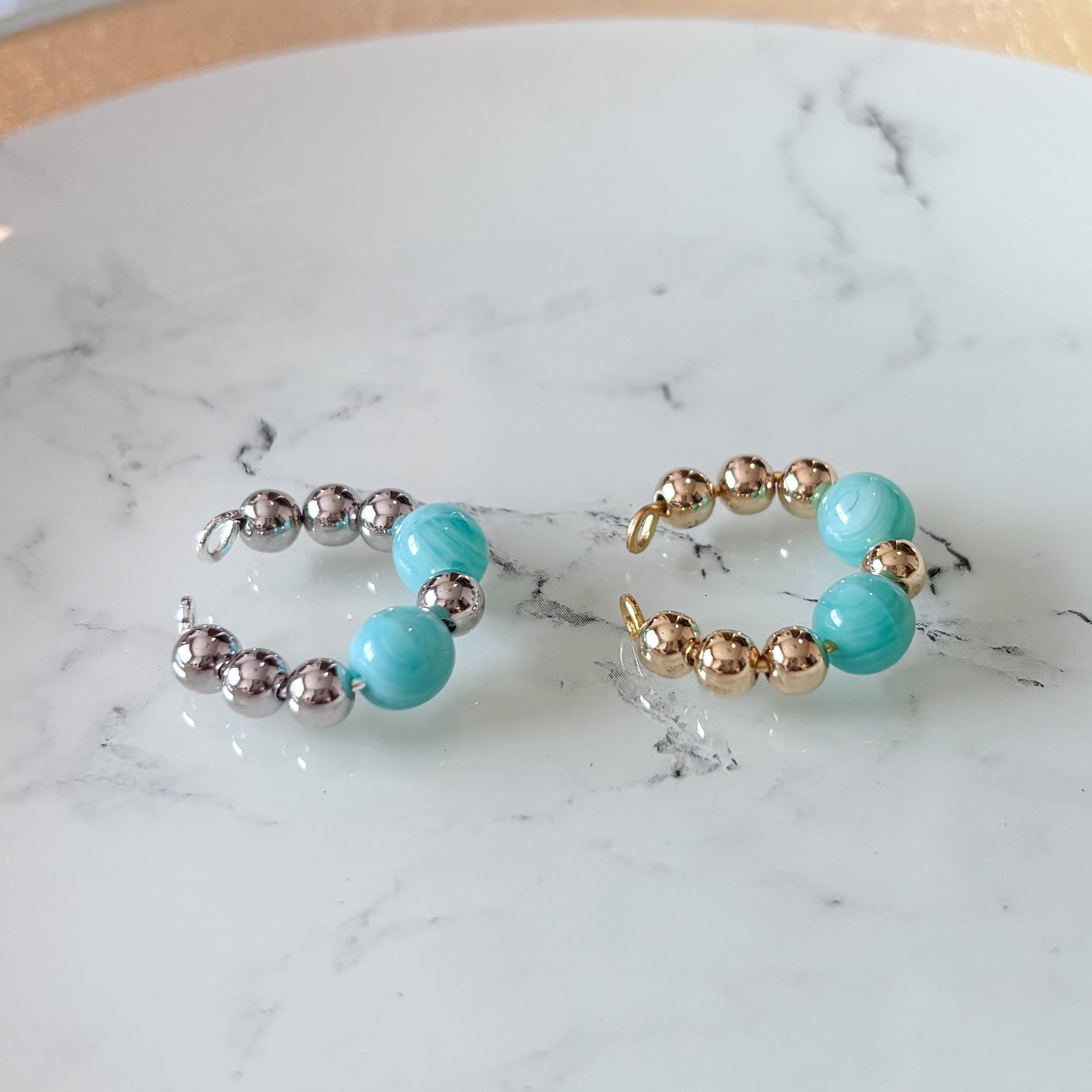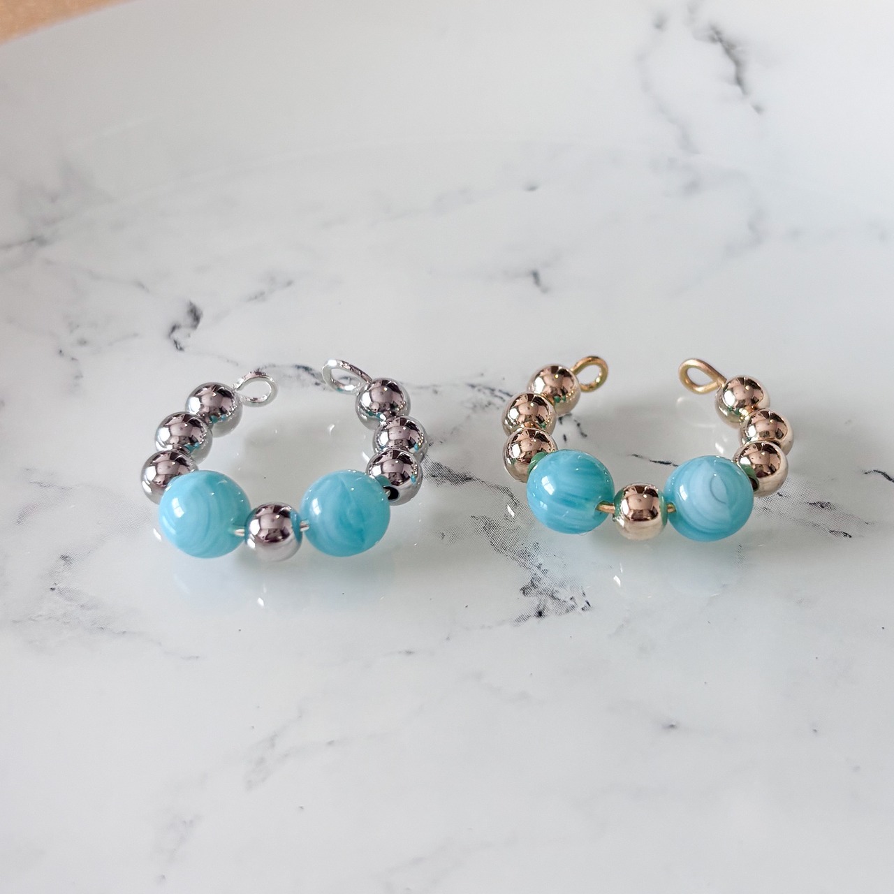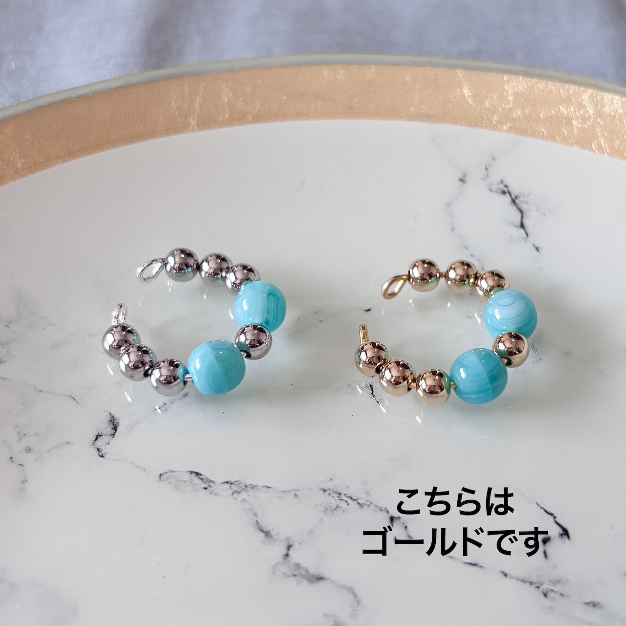 ペパーミントとゴールドのビーズをデザインした、