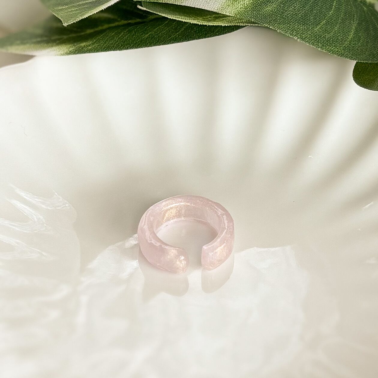 ピンクゴールドとパールラメがキラキラかわいいイヤーカフ。