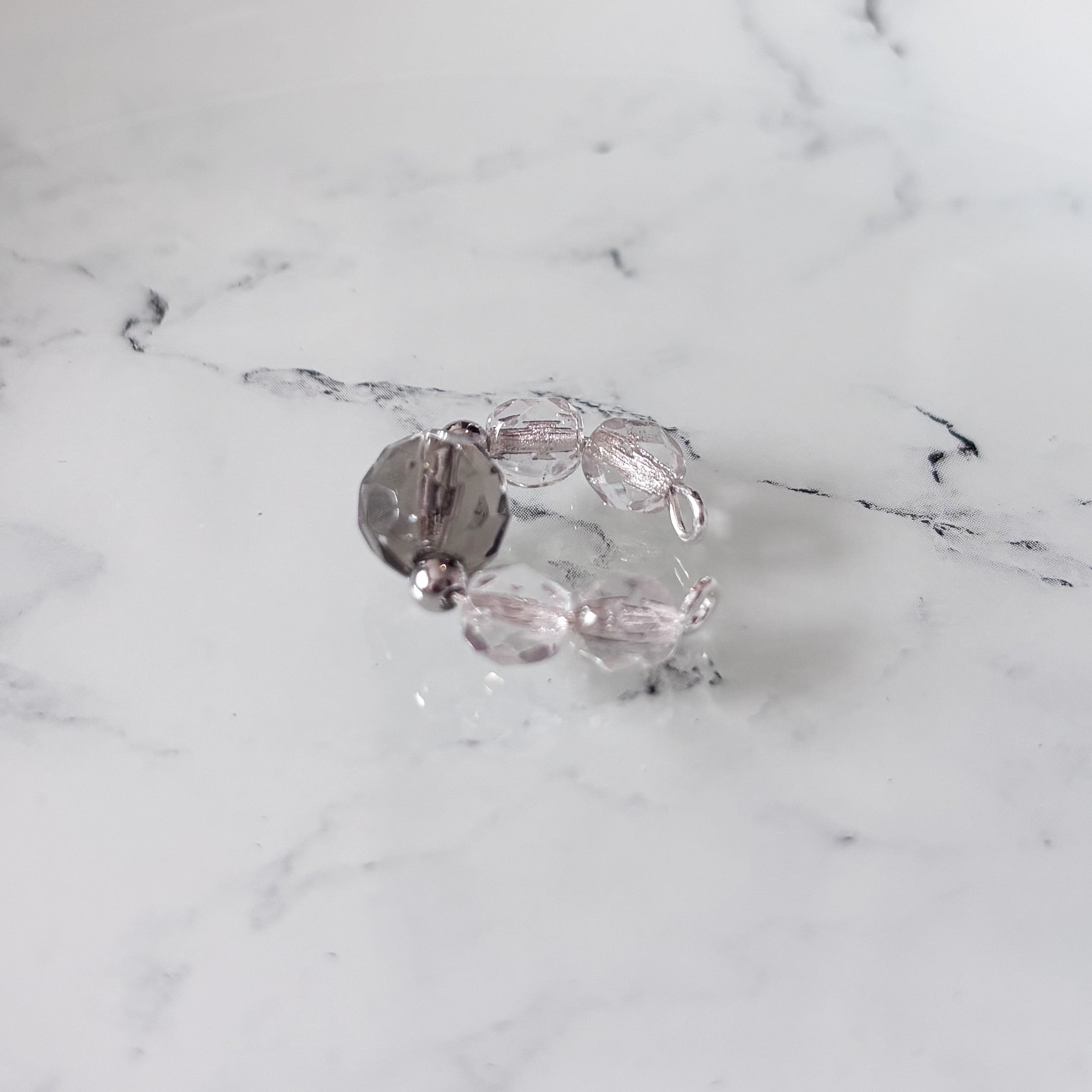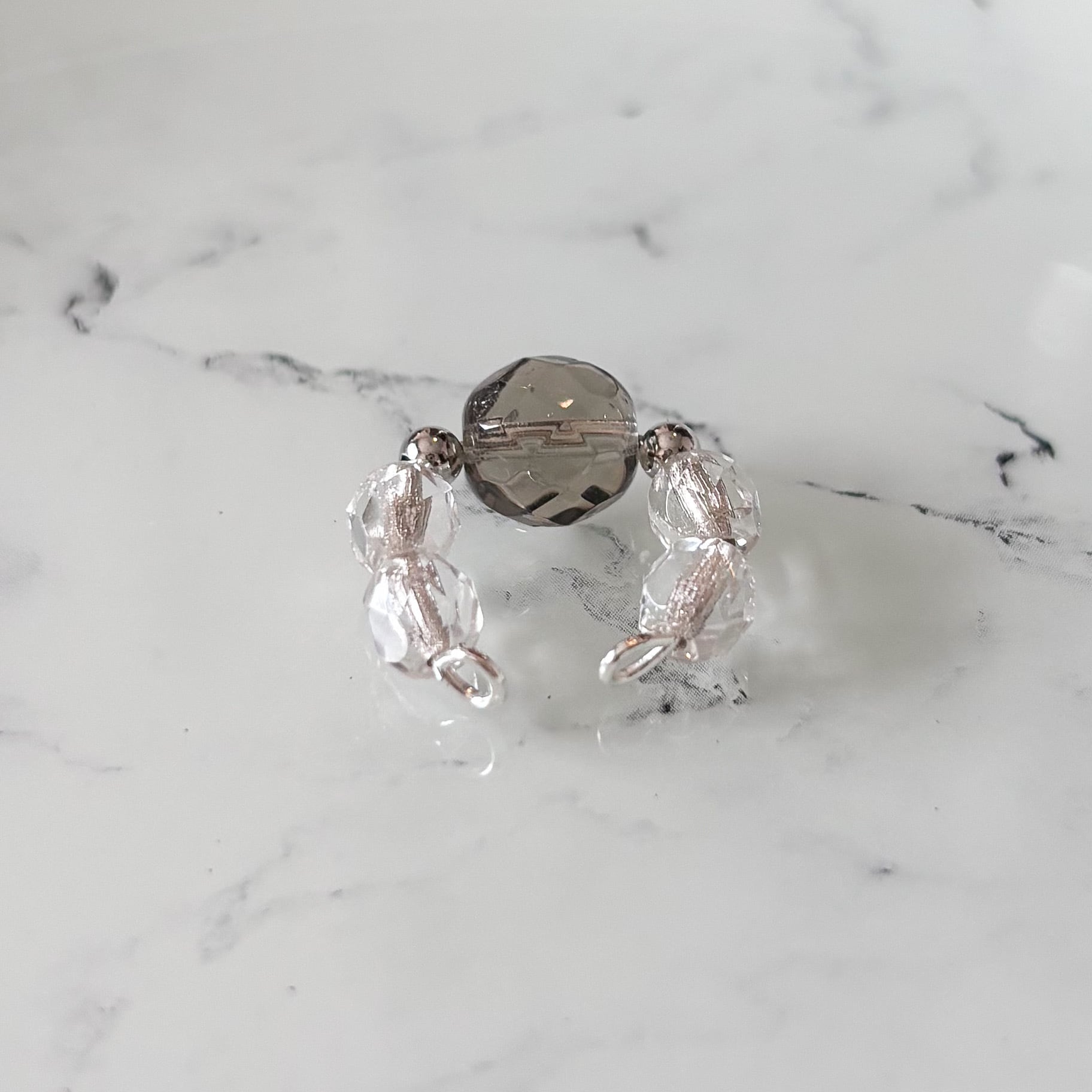 ブラックダイヤモンドとクリスタルシルバーのビーズをデザインした、上品、清楚な印象のイヤーカフ。