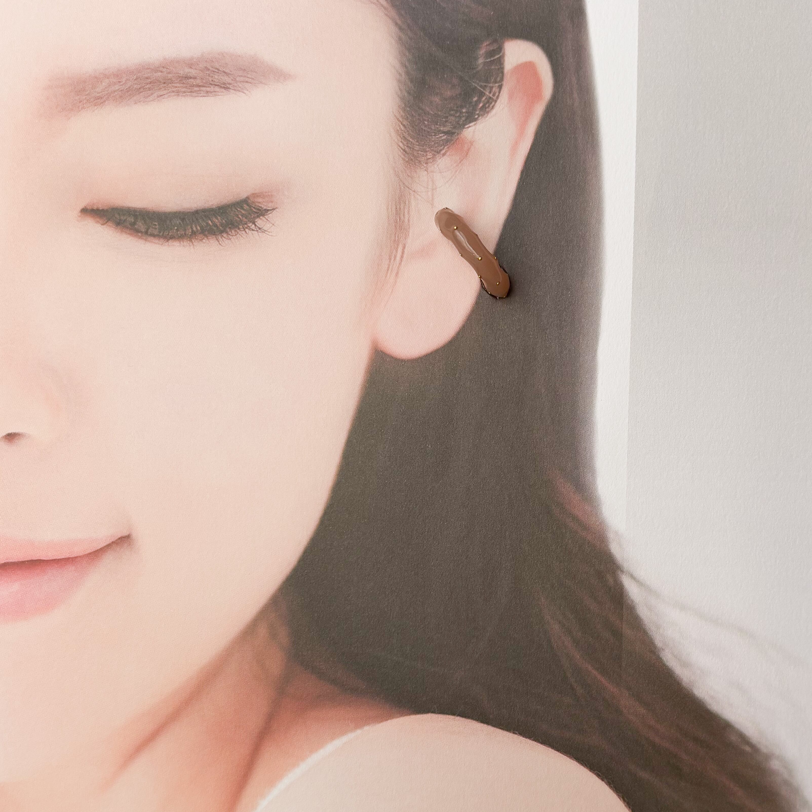 やさしいココアブラウンが耳元を包み込む、ぽってり丸みのあるイヤーカフ。