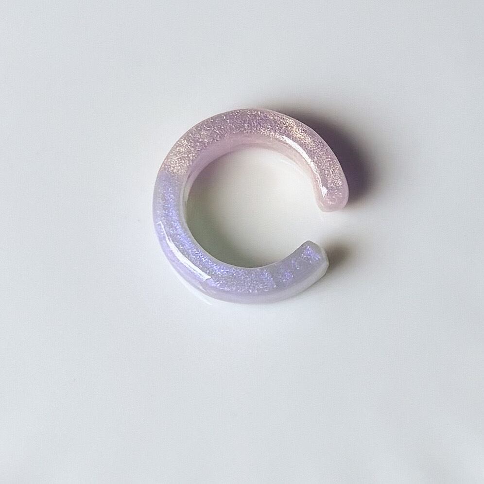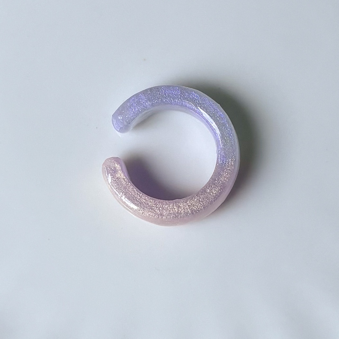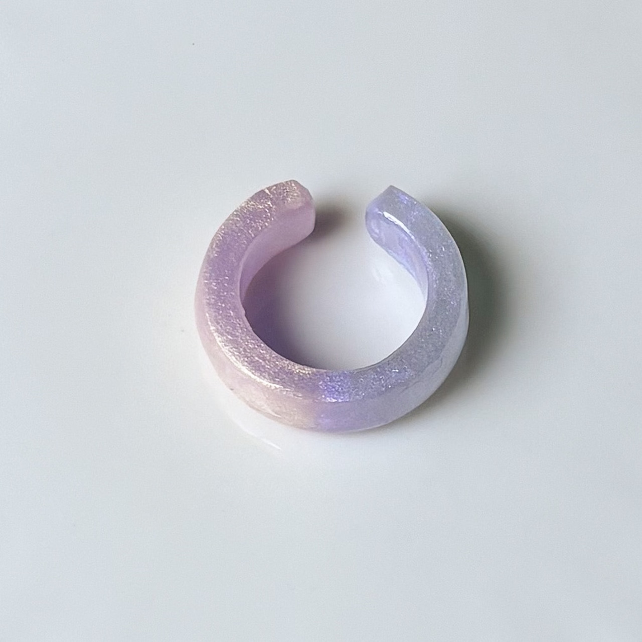 やわらかなパープルとピンクゴールドのツートンカラーが美しい、約2cmサイズのイヤーカフ。