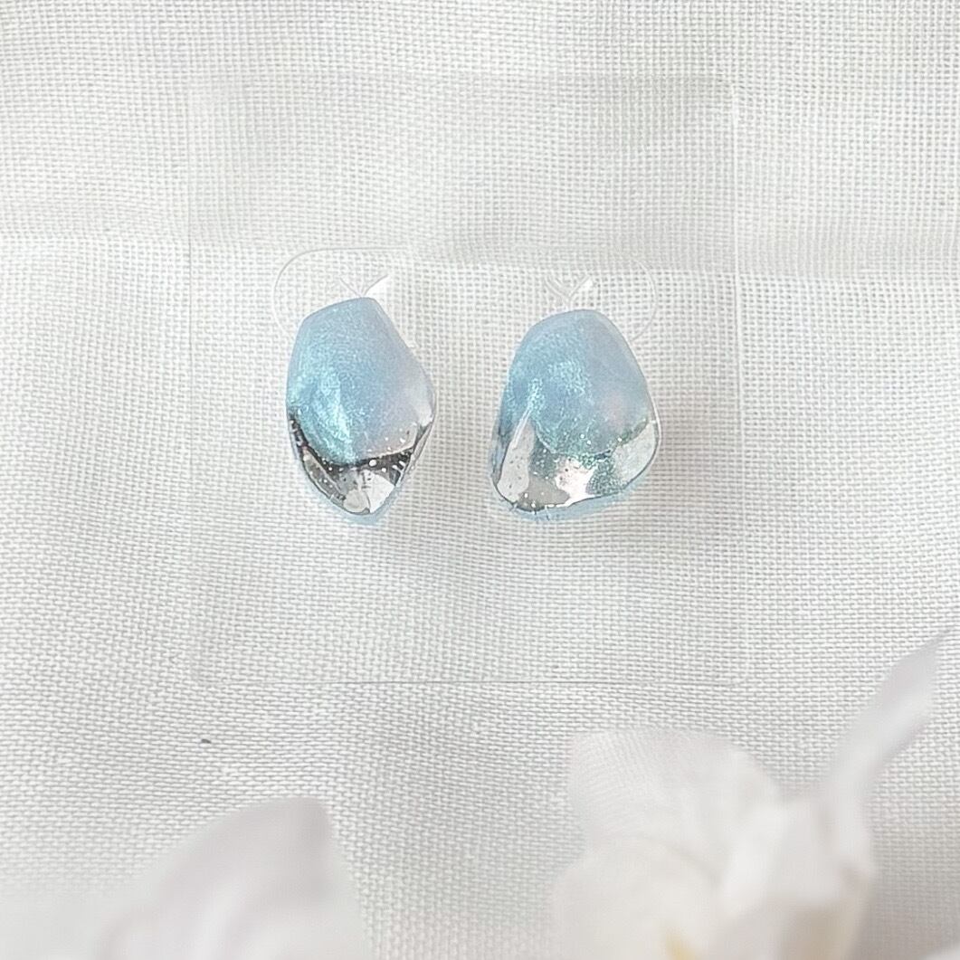 ブルー / 水色 / 青 / クリア / 透明 / シルバー / キラキラ / ピアス / シンプル / かわいい / 可愛い / さわやか / 涼しげ / 夏アクセ / オシャレ / おしゃれ / オフィス / お出かけ / ステンレス / サージカルステンレス / デイリーユース