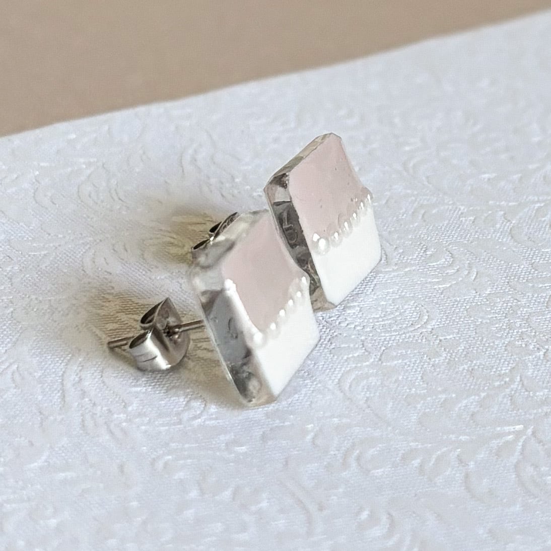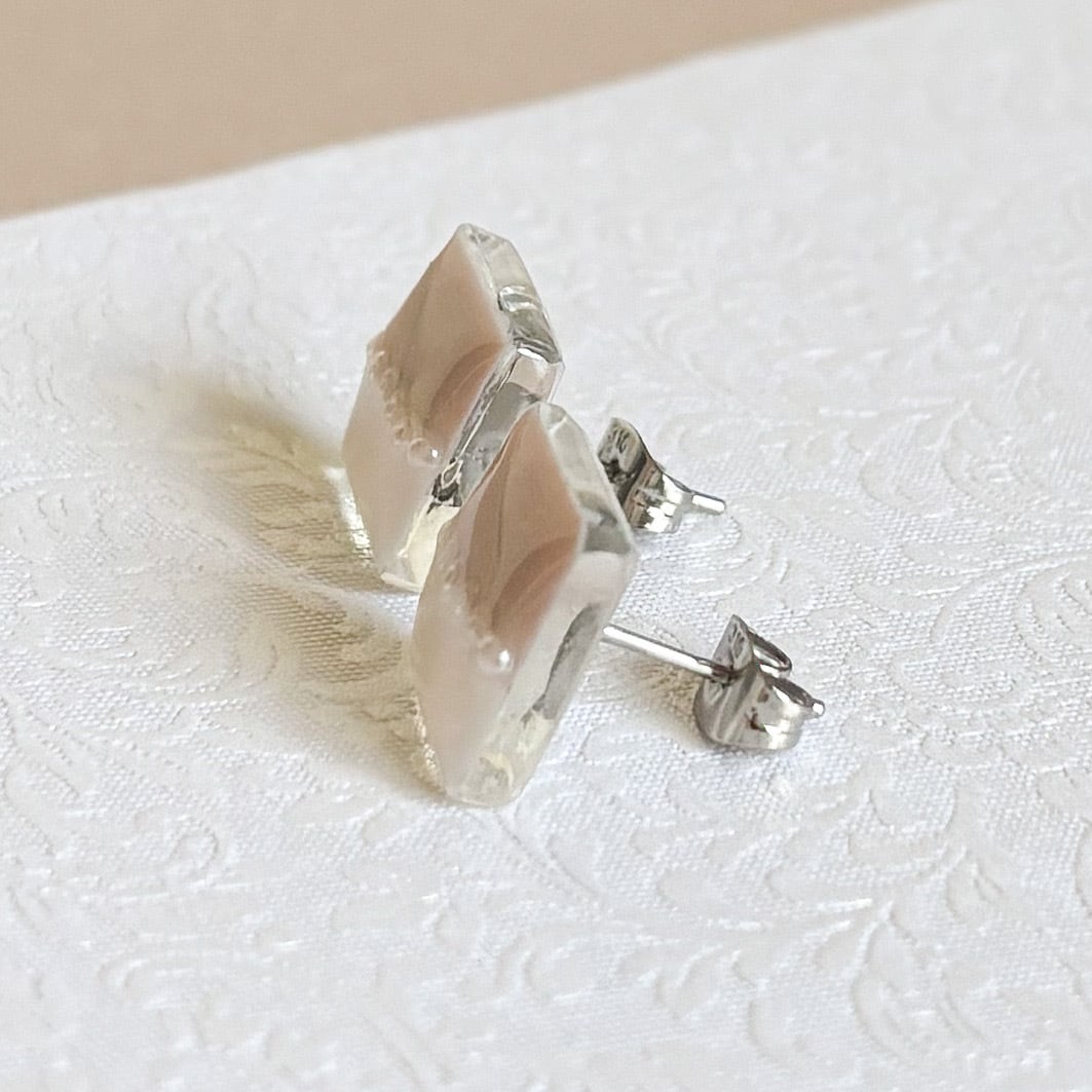 グレージュ ピアス/アイボリー ピアス/パール ピアス/キラキラ ピアス/シルバー ピアス/スクエア ピアス/四角 ピアス/小ぶり ピアス/小さめ ピアス/かわいい ピアス/大人可愛い/ステンレス ピアス/サージカルステンレス/お出かけ アクセサリー/ハンドメイドピアス