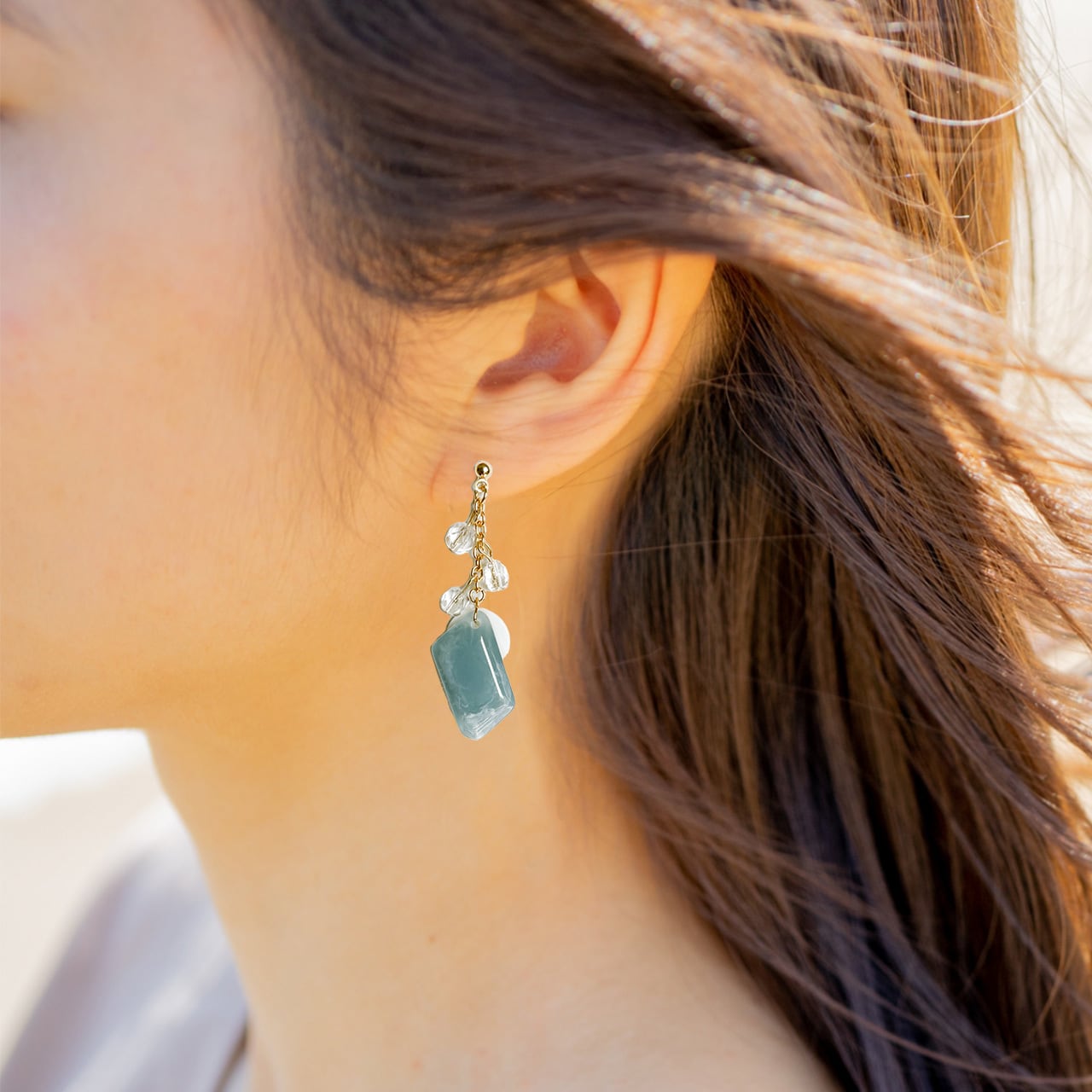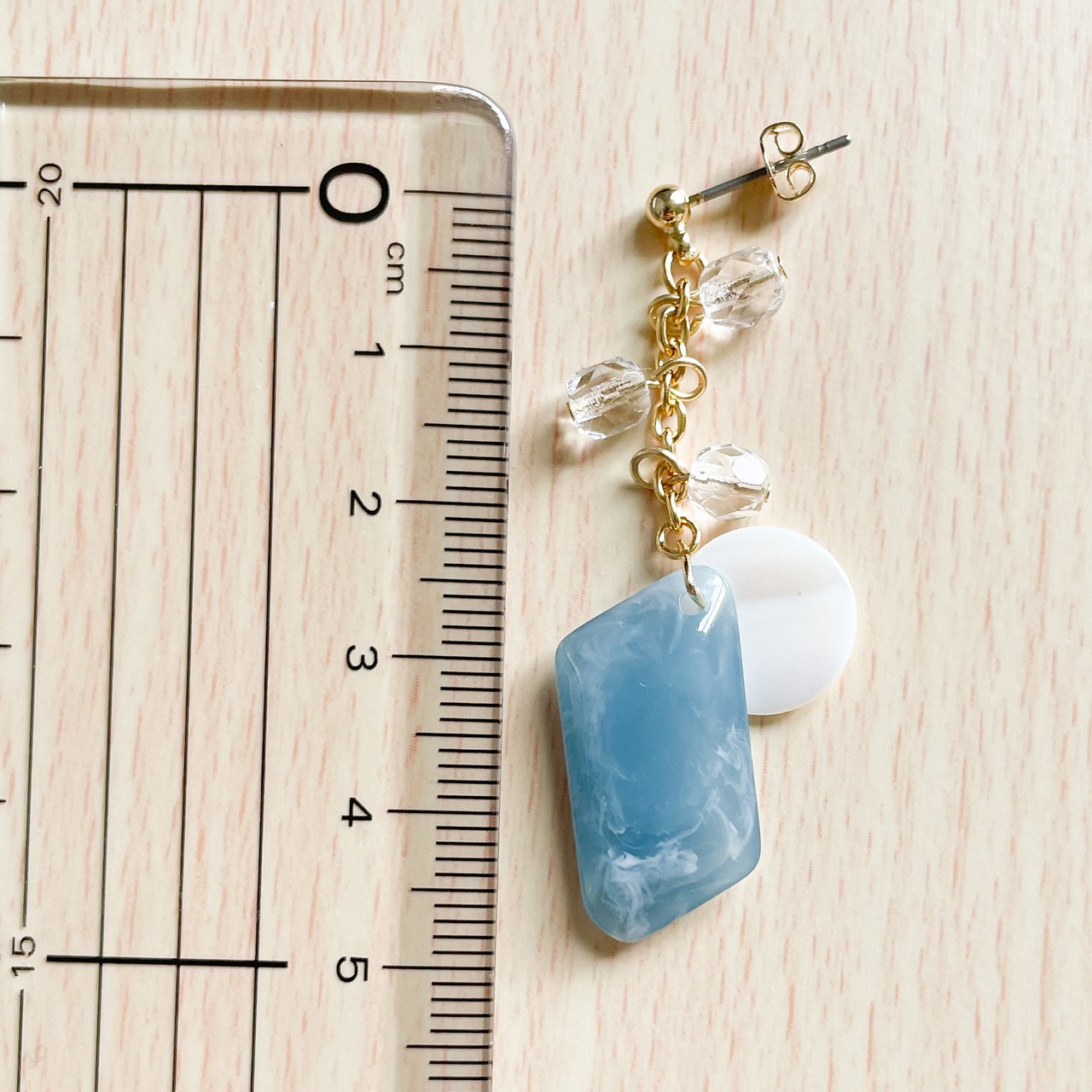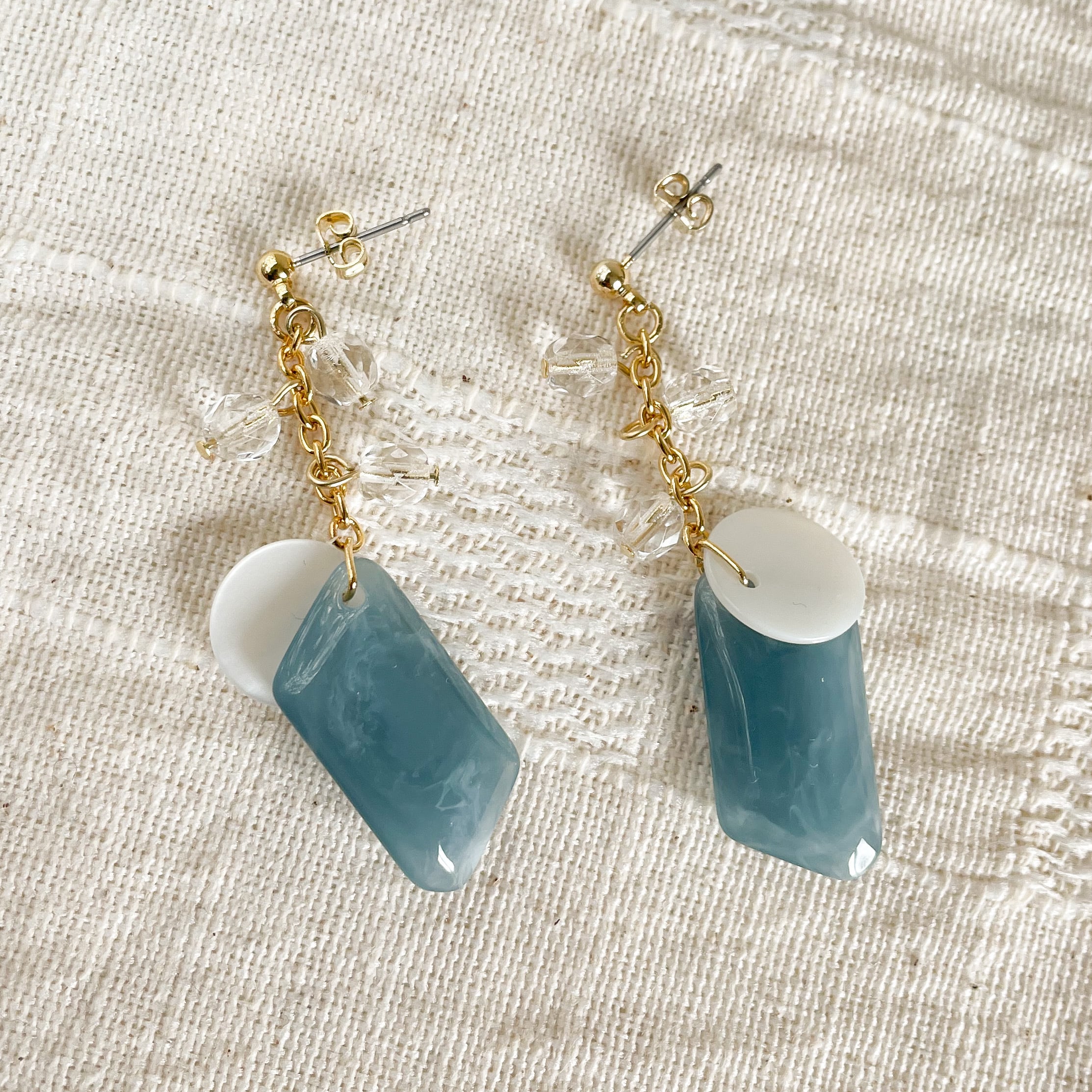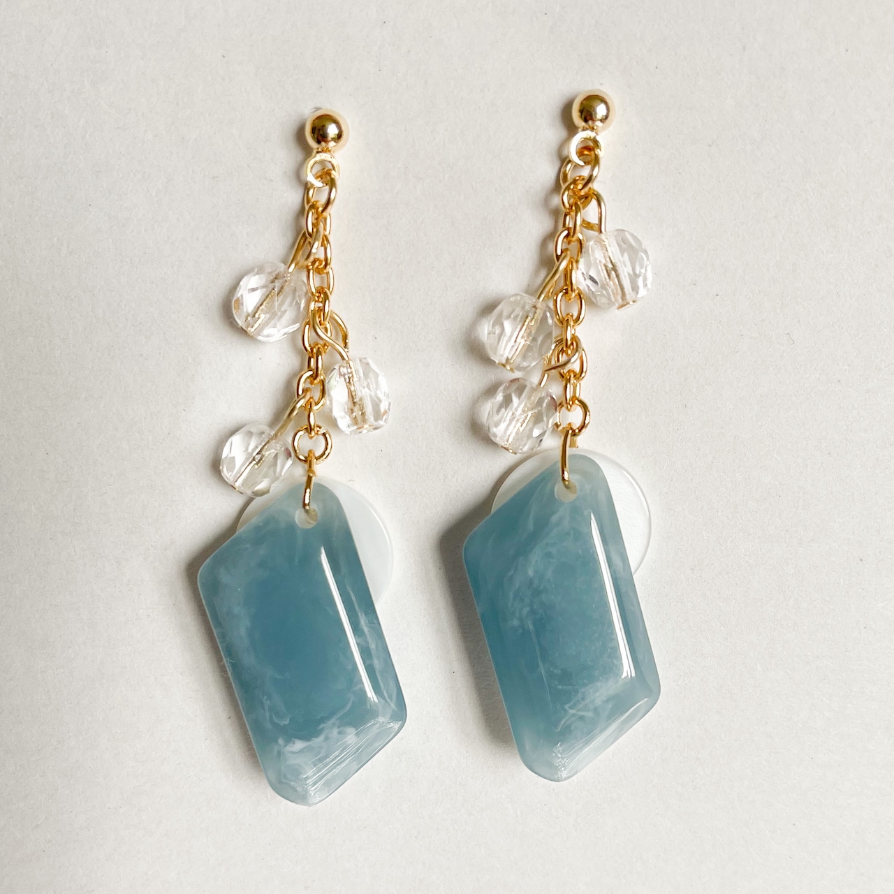 マーブル ピアス/スクエア ピアス/四角 ピアス/ブルー ピアス/クリア ピアス/クリスタル ピアス/チェコビーズ/ゴールド チェーン ピアス/揺れる ピアス/さわやか ピアス/ハンドメイドピアス/デイリーユース/お出かけ アクセサリー