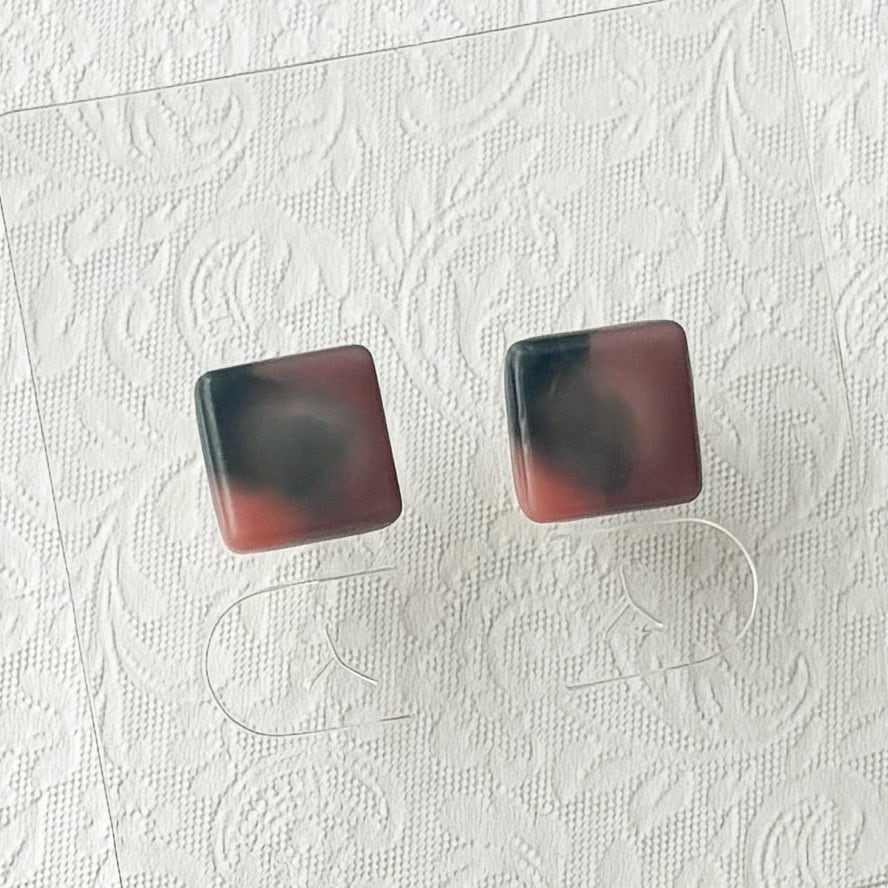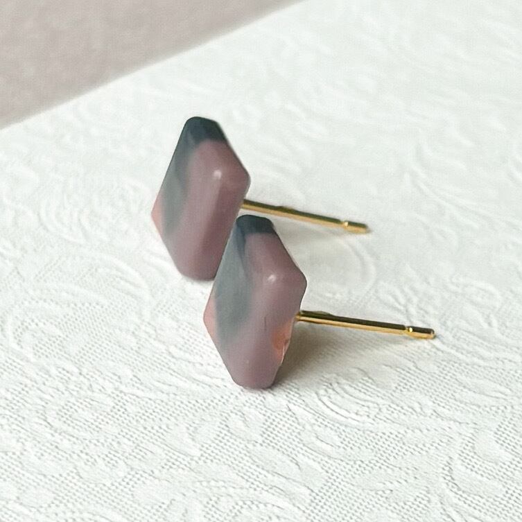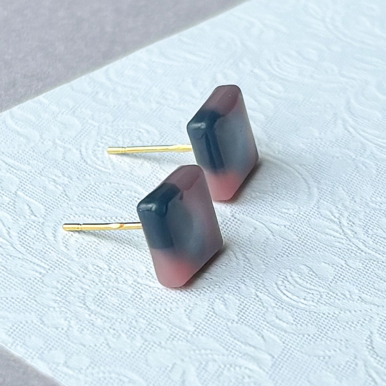 3color/グラデーション/アイリス/ローズピンク/インディゴ/くすみ/くすみカラー/四角/スクエア/プチ/小さい/小さめ/小ぶり/かわいい/可愛い/オシャレ/おしゃれ/ステンレス/サージカルステンレス/ハンドメイドピアス