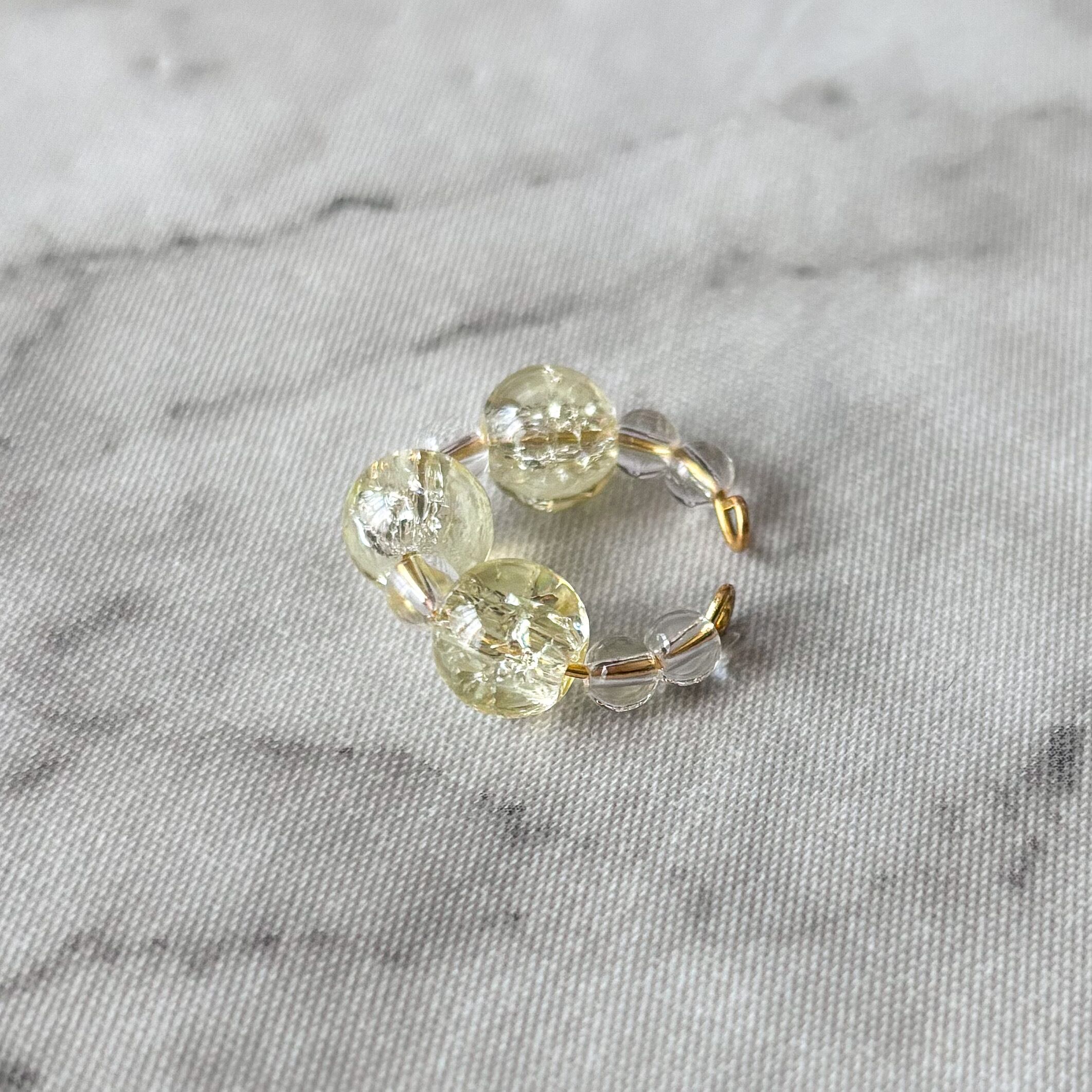 透明感のあるイエローカラーのクラックガラスビーズを使用した、