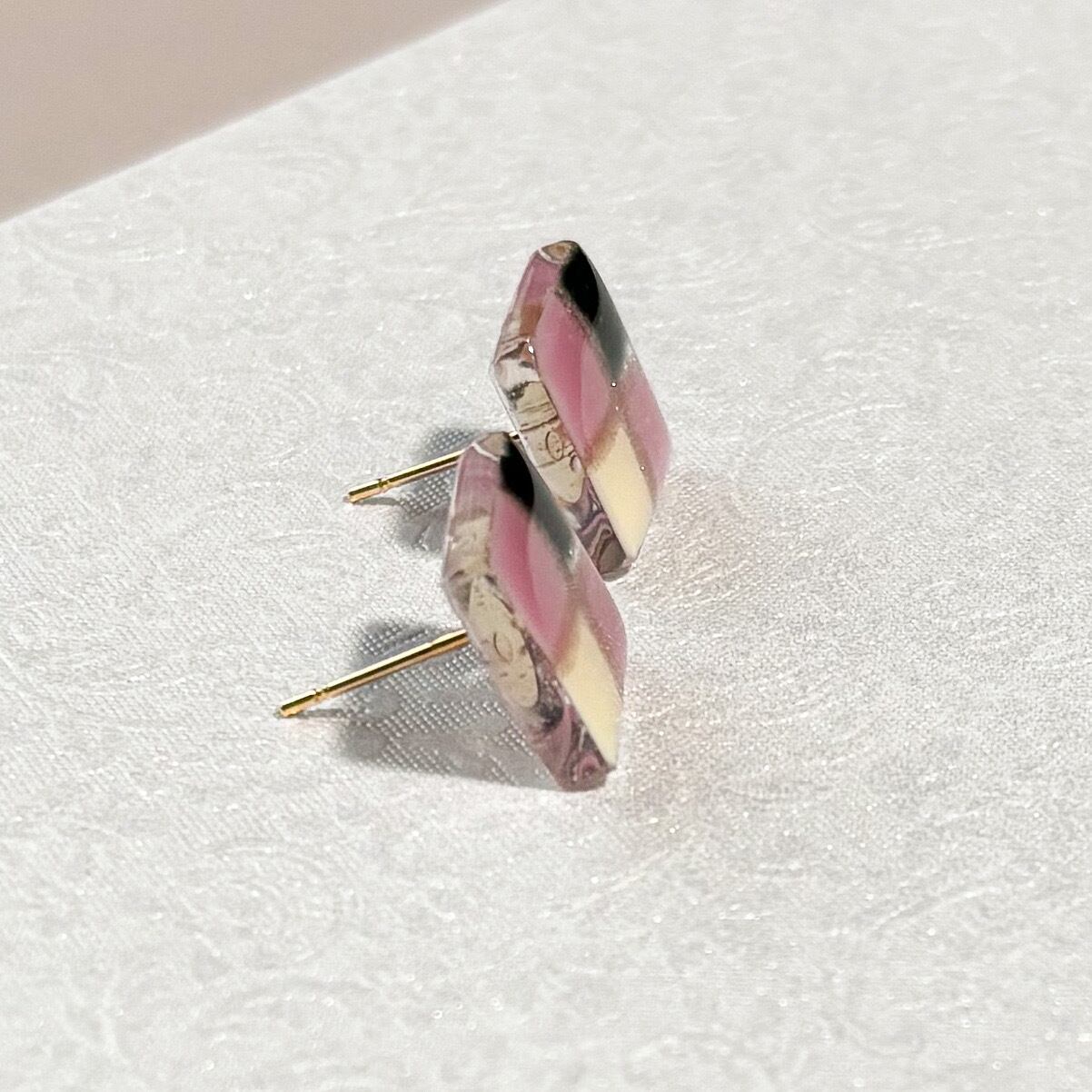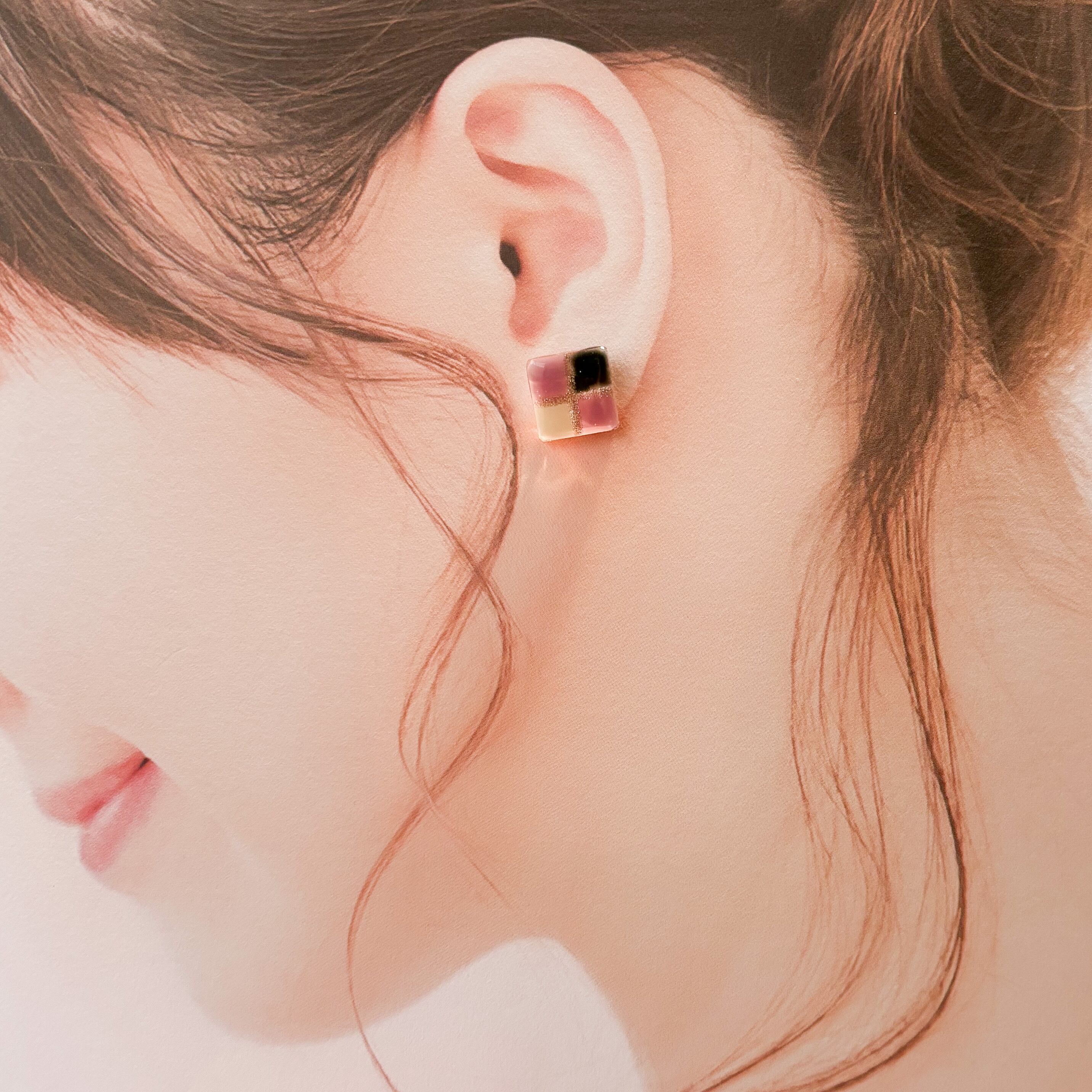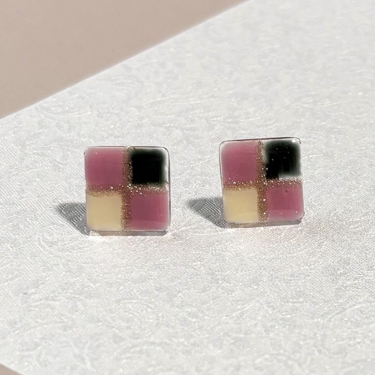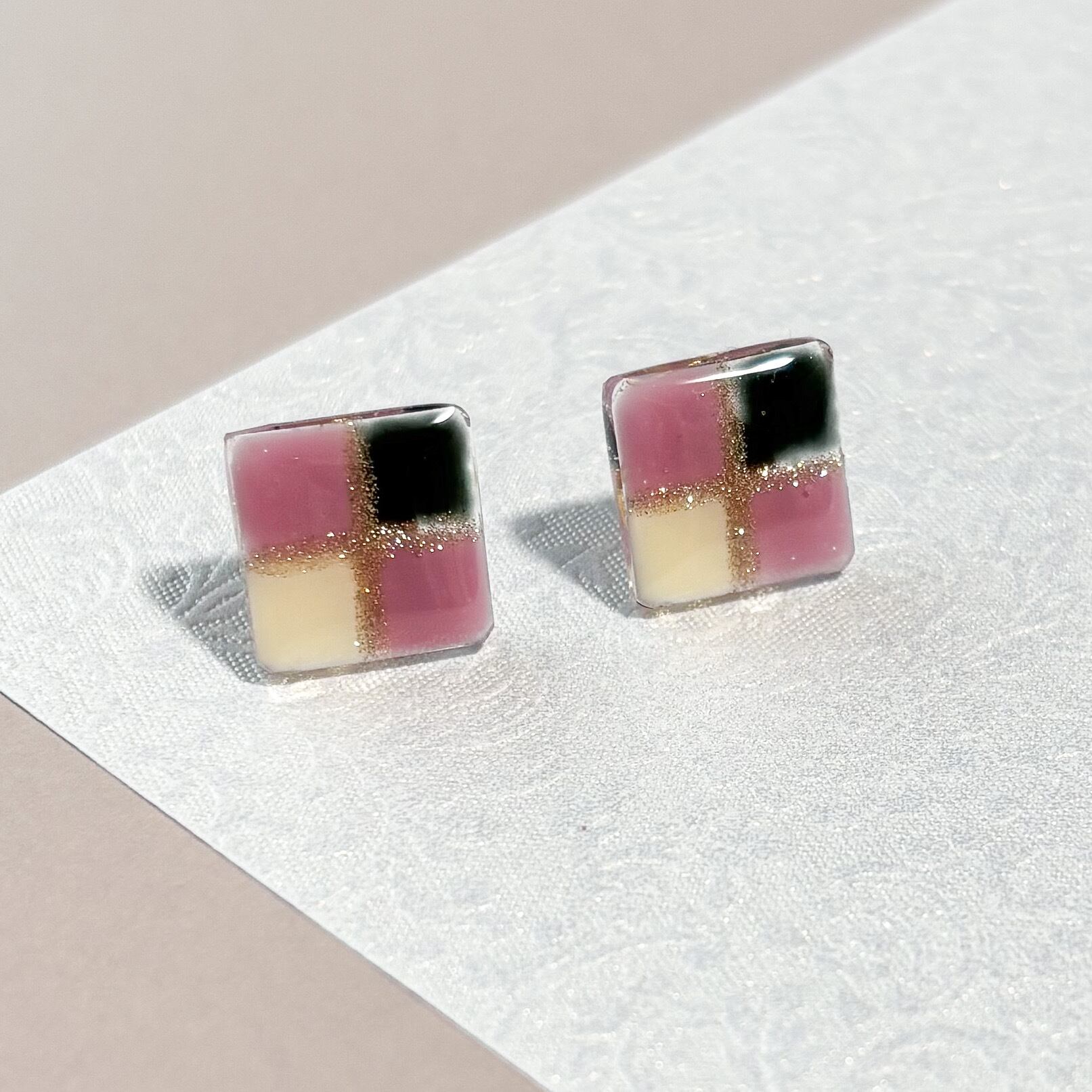 ピンク, 白, ホワイト, 黒, ブラック, パープル, チェック柄, スクエア, 四角, ゴールドライン, キラキラ, ピアス, 大人可愛い, かわいい, 可愛い, おしゃれ, オシャレ, 普段使い, デイリーユース, お出かけ, オフィス, ステンレス, サージカルステンレス, 金属アレルギー対応, ハンドメイドピアス