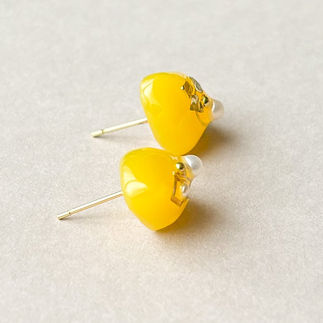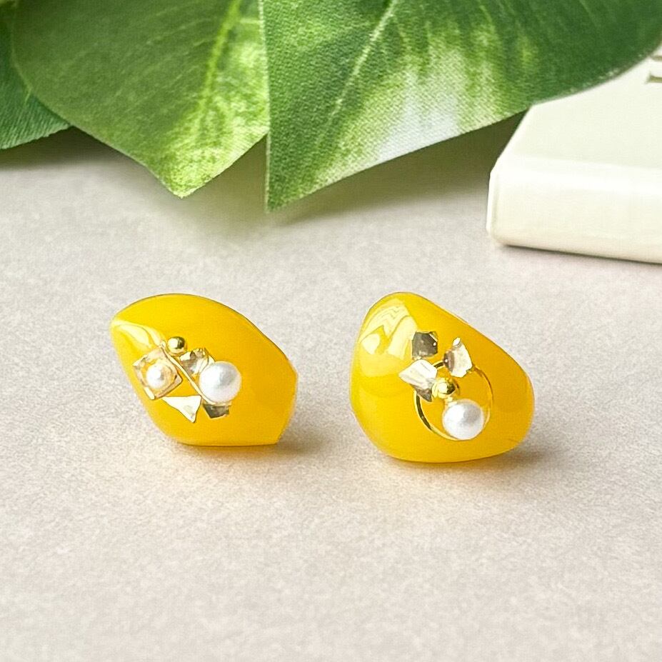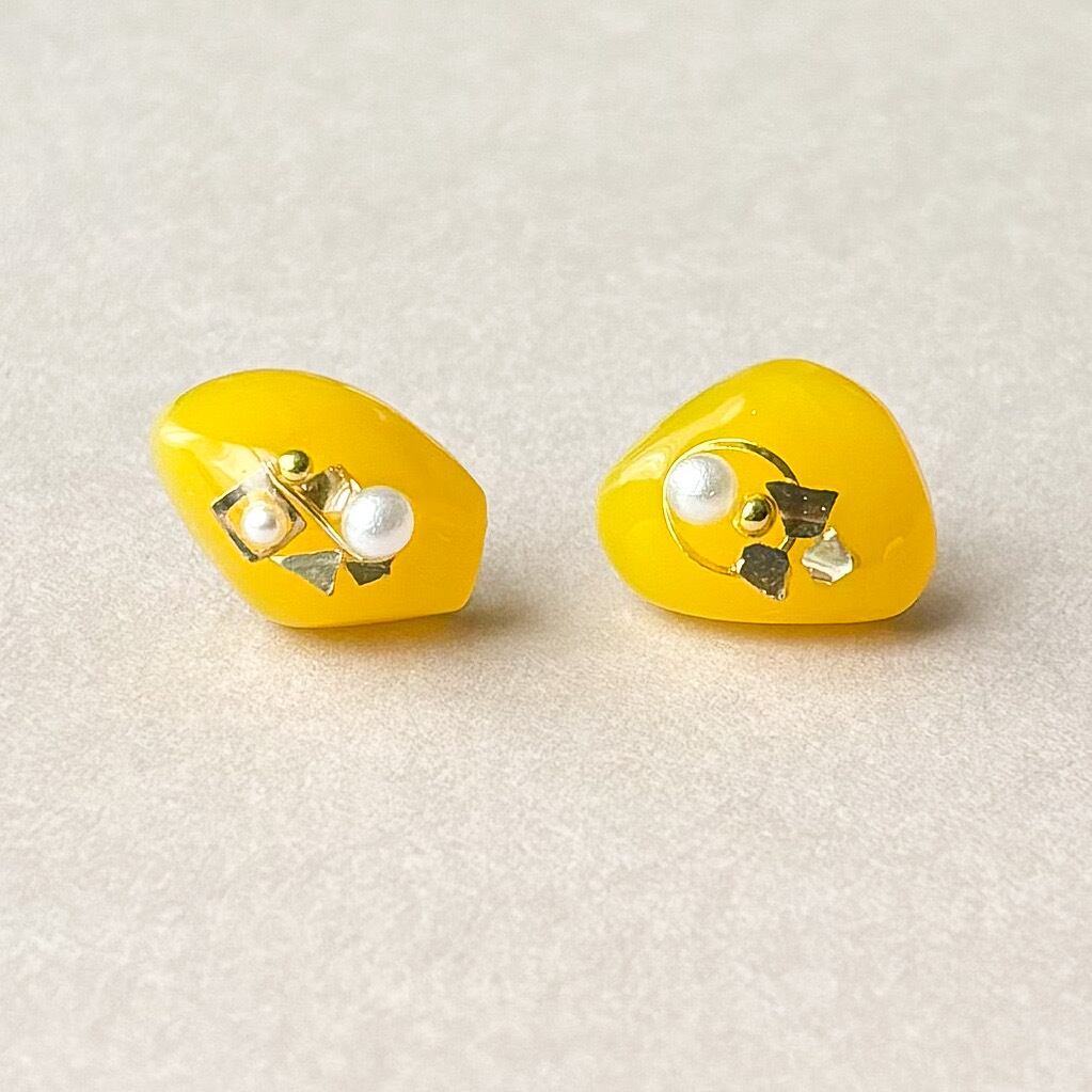 イエロー, 黄色, くすみ, くすみカラー, ゴールド, パール, キラキラ, ラメ, ピアス, かわいい, 可愛い, 大人可愛い, 上品, シンプル, きれいめ, おしゃれ, オシャレ, オフィス, 普段使い, お出かけ, デイリーユース, ステンレス, サージカルステンレス, 金属アレルギー対応, ハンドメイドピアス