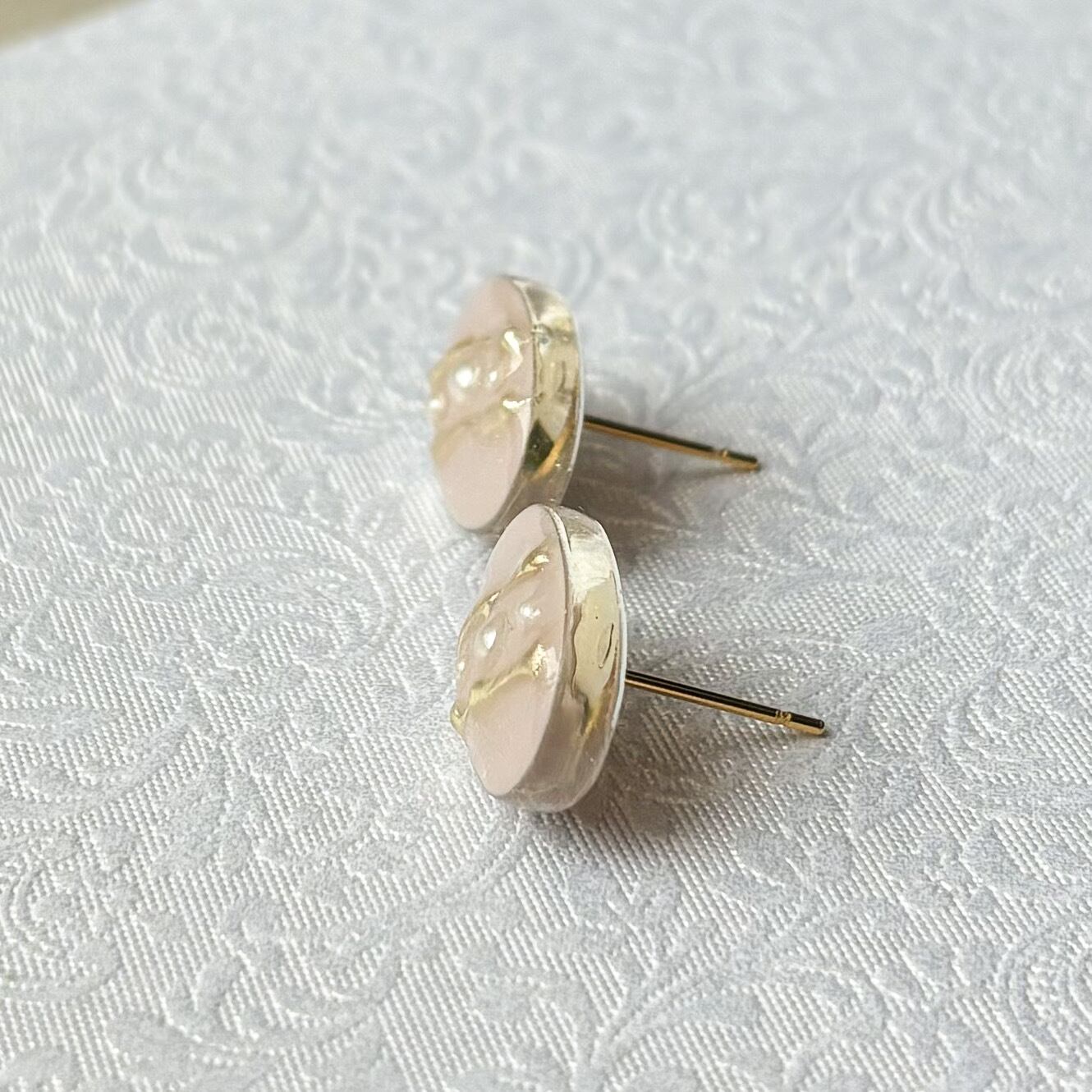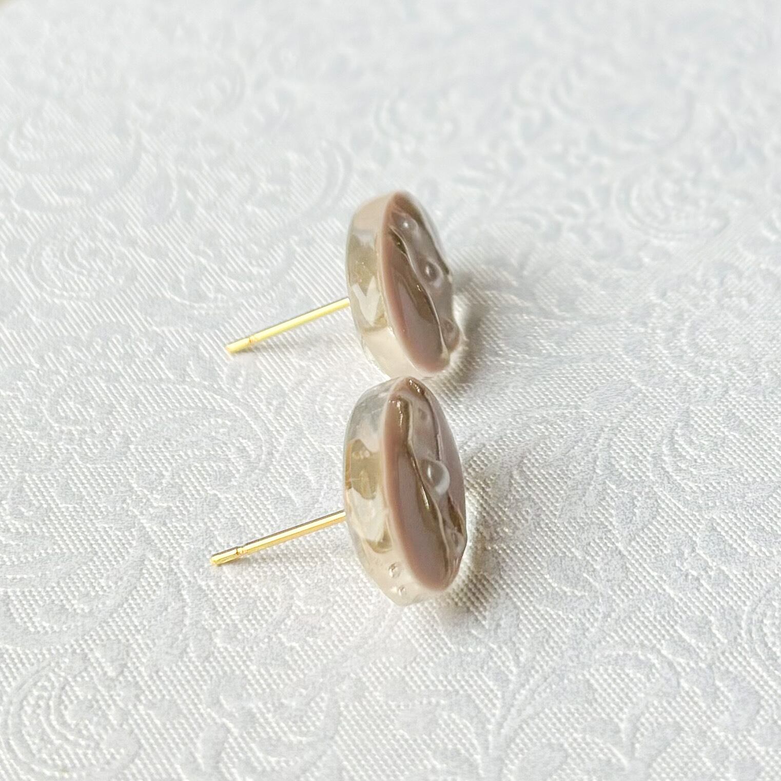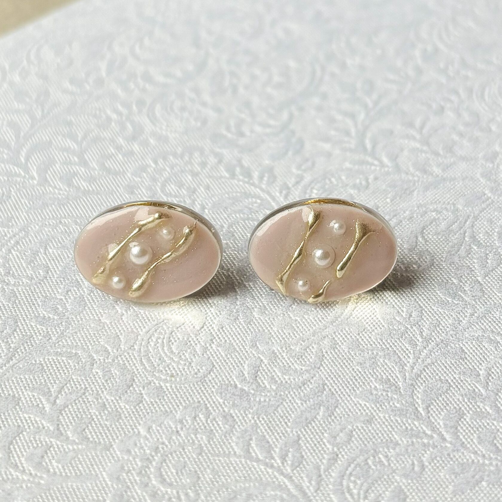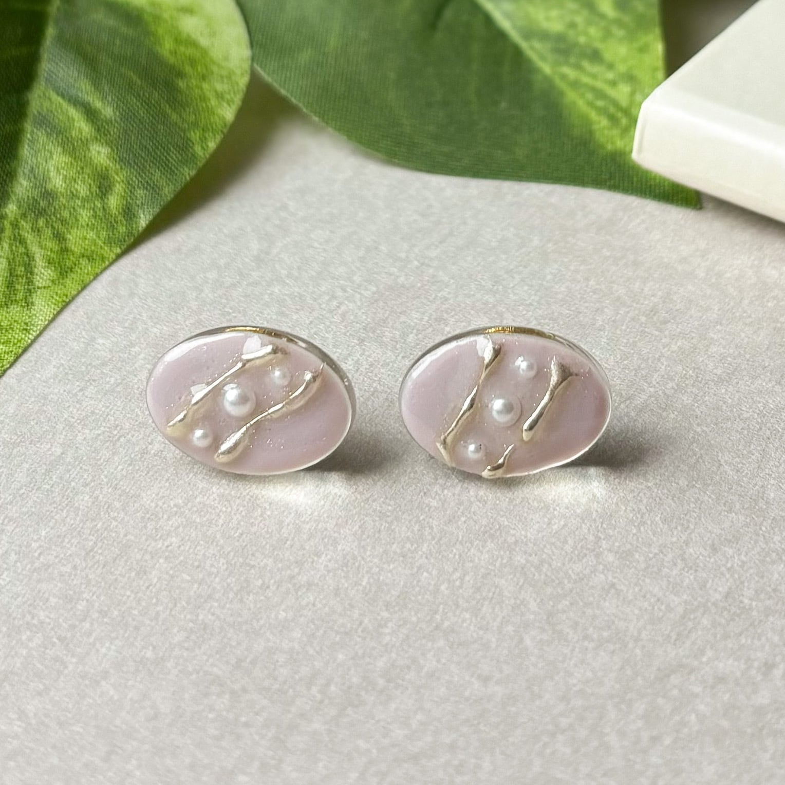 グレージュ, ピンク, パール, ゴールド, 金, ピアス, オーバル, 楕円, 丸, 上品, エレガント, きれいめ, 大人可愛い, かわいい, 可愛い, シンプル, おしゃれ, オシャレ, 普段使い, お出かけ, デイリーユース, ステンレス, サージカルステンレス, 金属アレルギー対応, ハンドメイドピアス