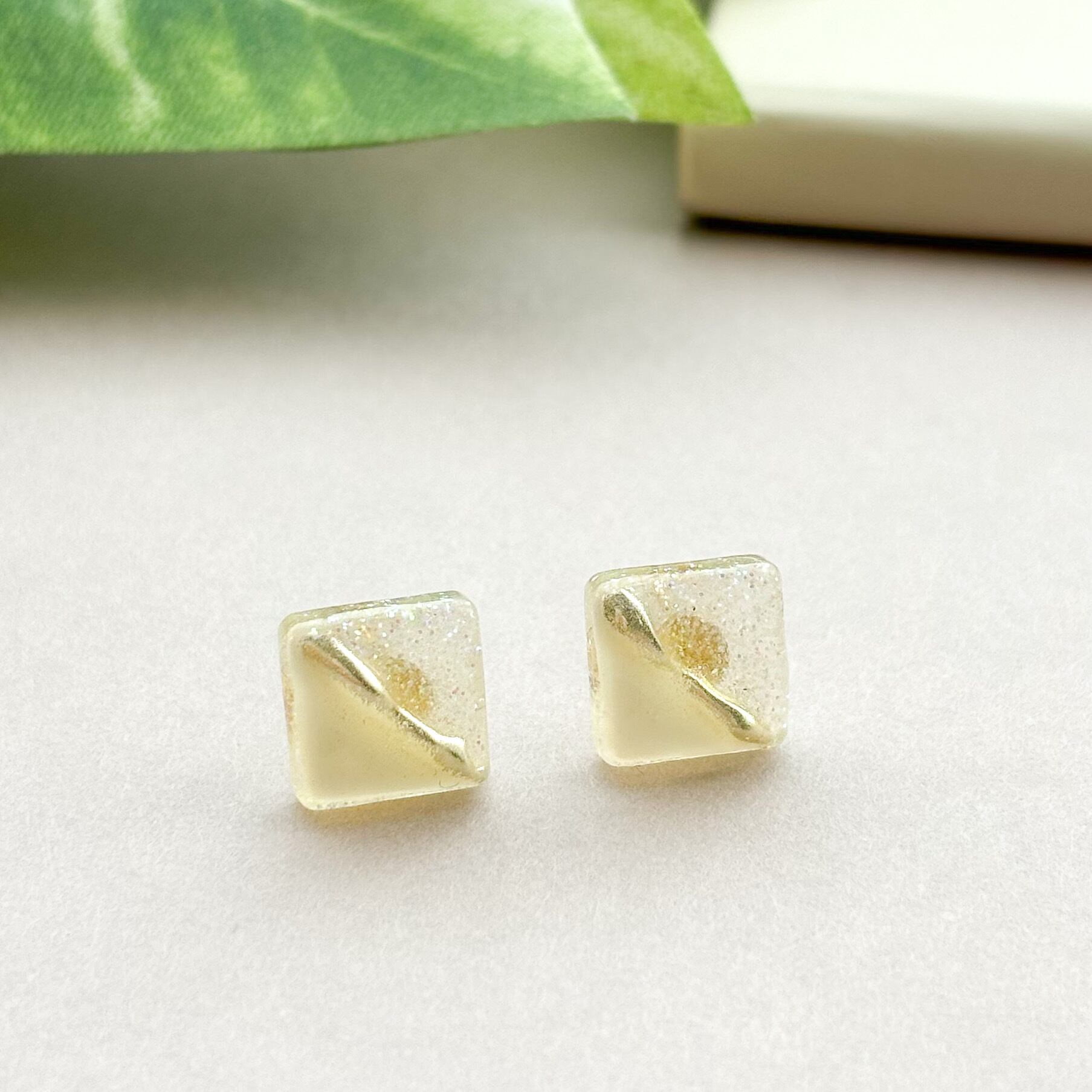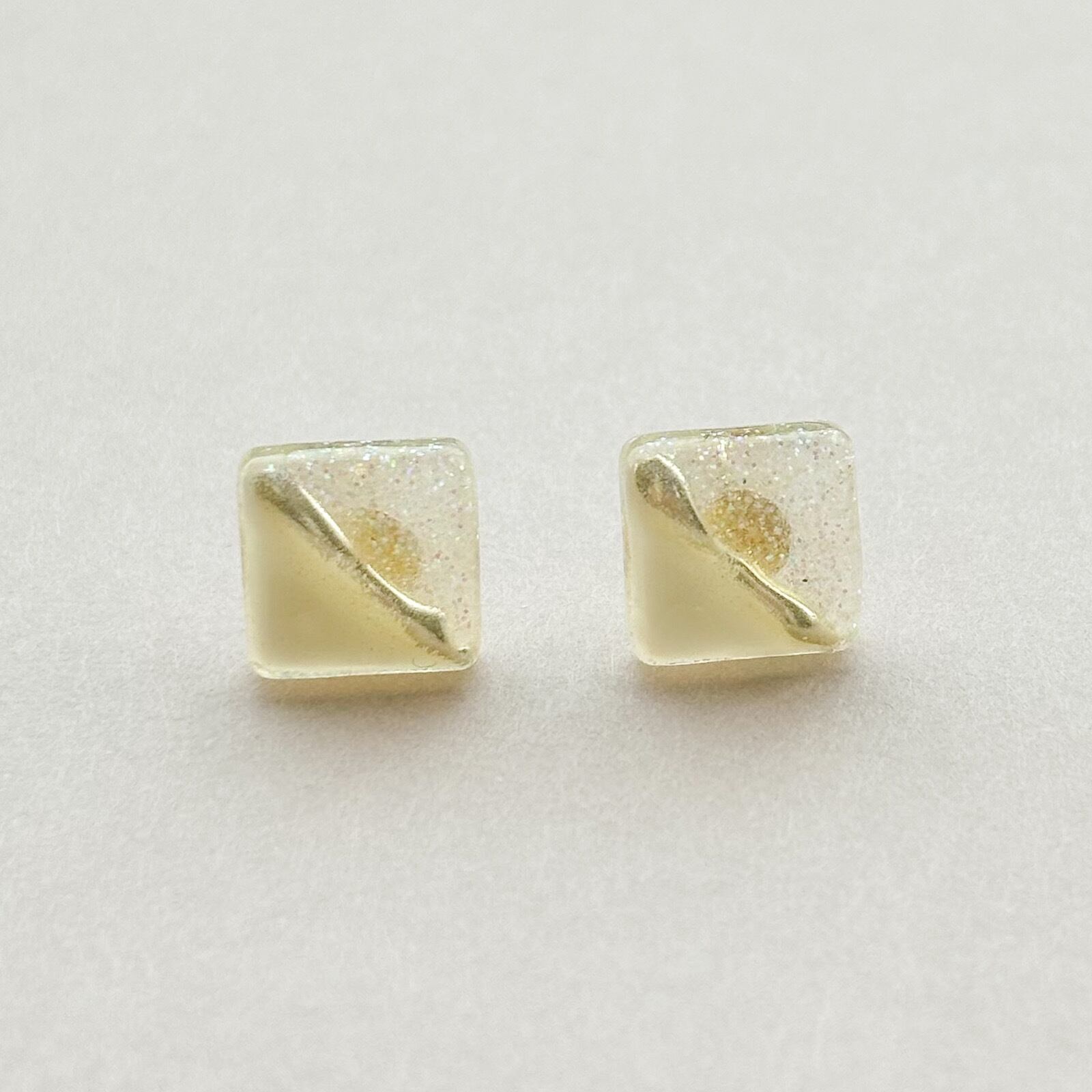 アイボリー, ホワイト, 白, 黄色, くすみ, くすみカラー, キラキラ, ラメ, ゴールド, ツートンカラー, スクエア, 四角, ピアス, プチ, 小さい, 小さめ, 小ぶり, かわいい, 可愛い, 大人可愛い, シンプル, オシャレ, おしゃれ, オフィス, 普段使い, お出かけ, デイリーユース, ステンレス, サージカルステンレス, 金属アレルギー対応, ハンドメイドピアス