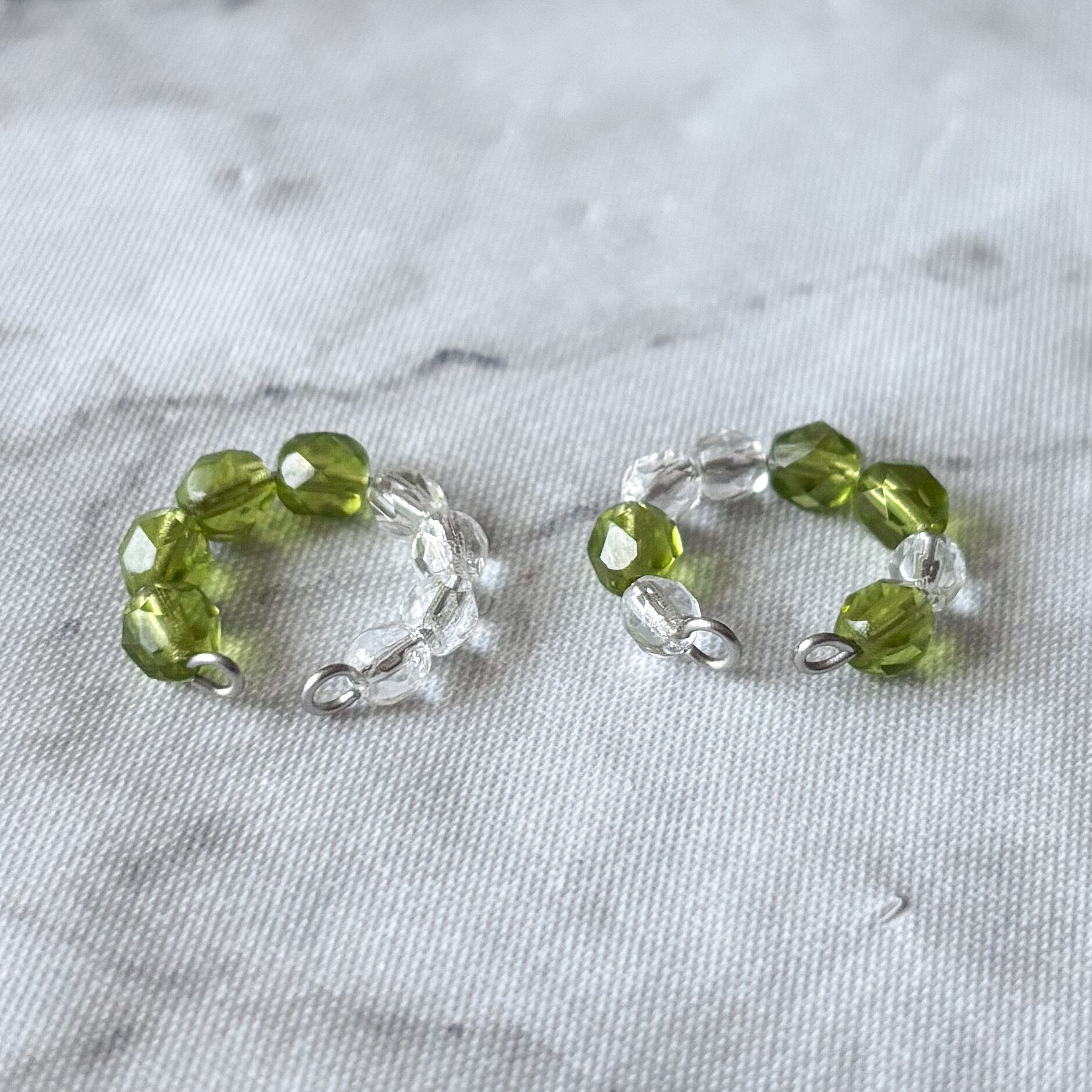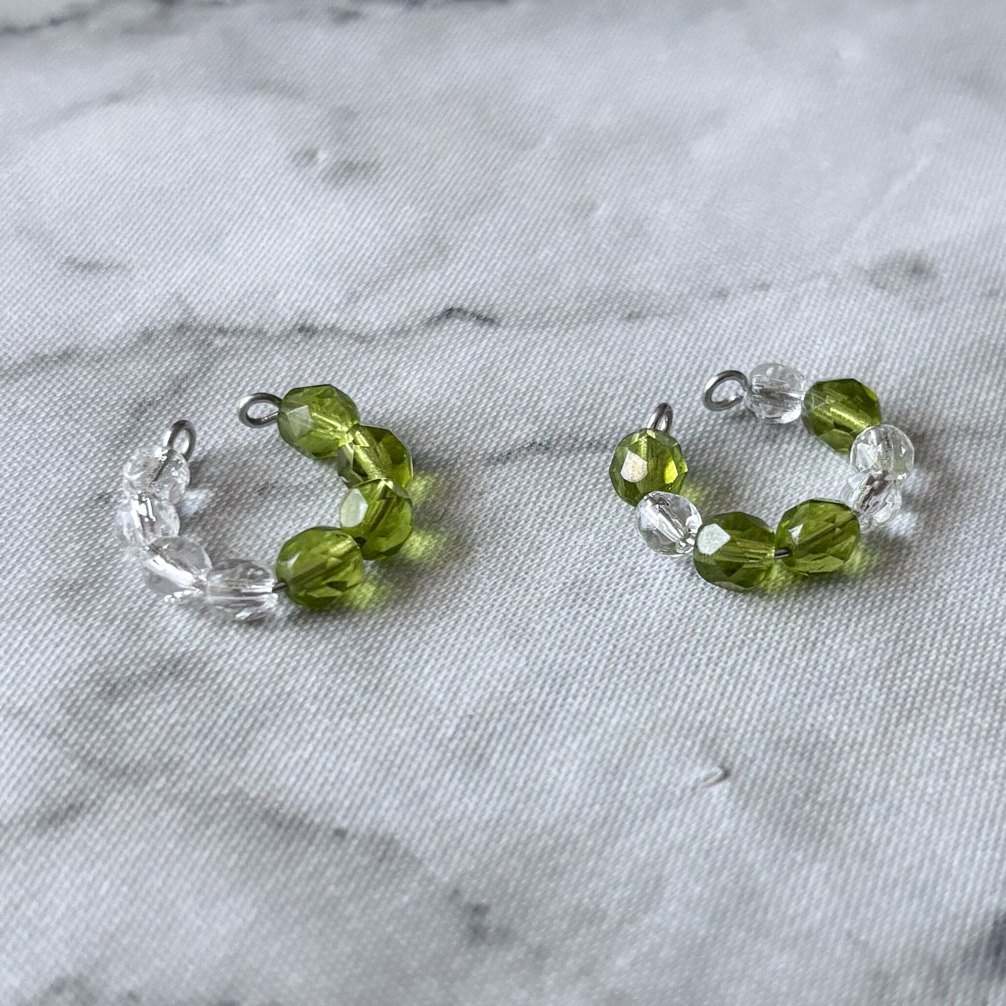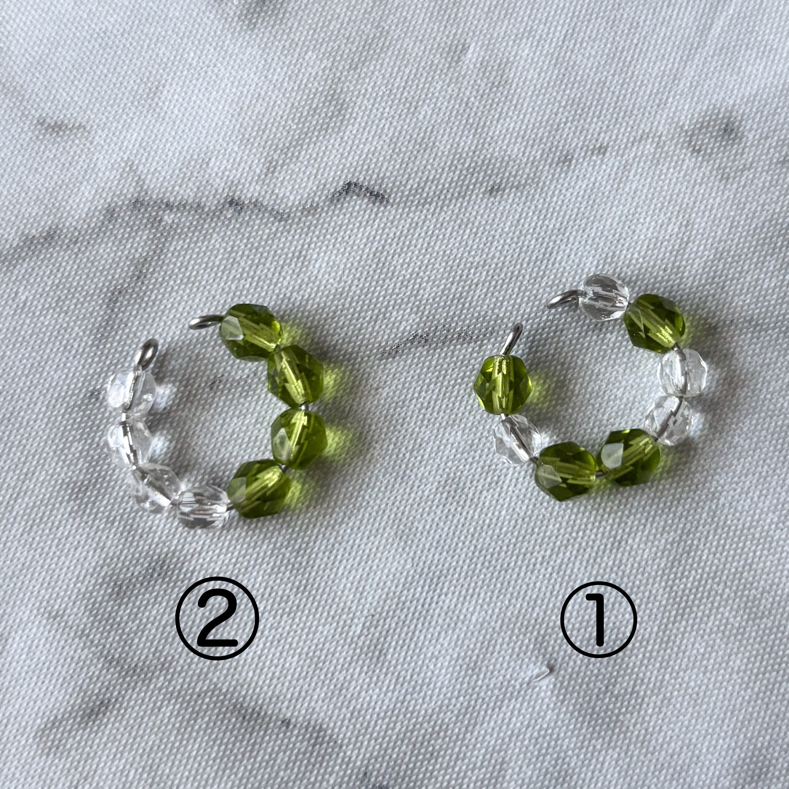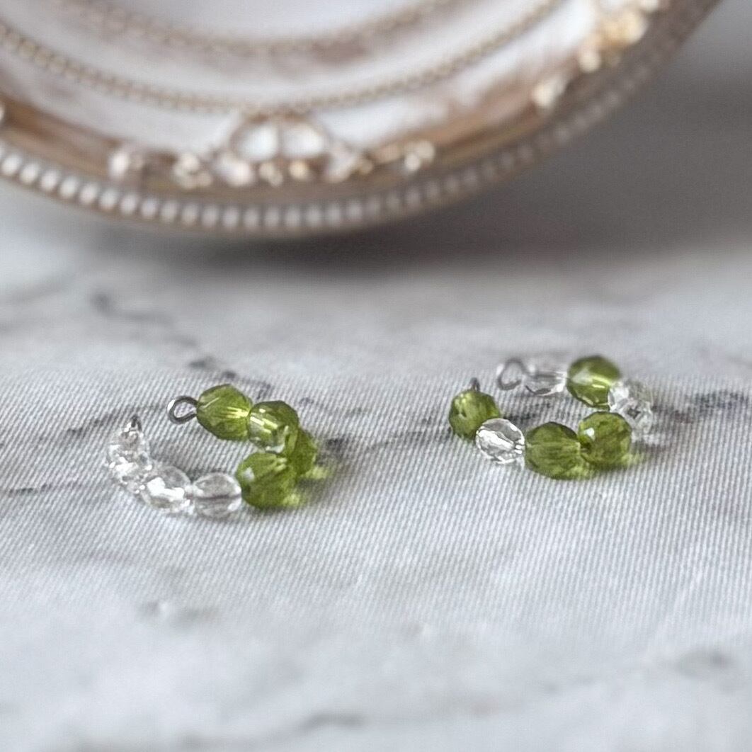 落ち着きのあるオリーブグリーンのクリアビーズを使用した、