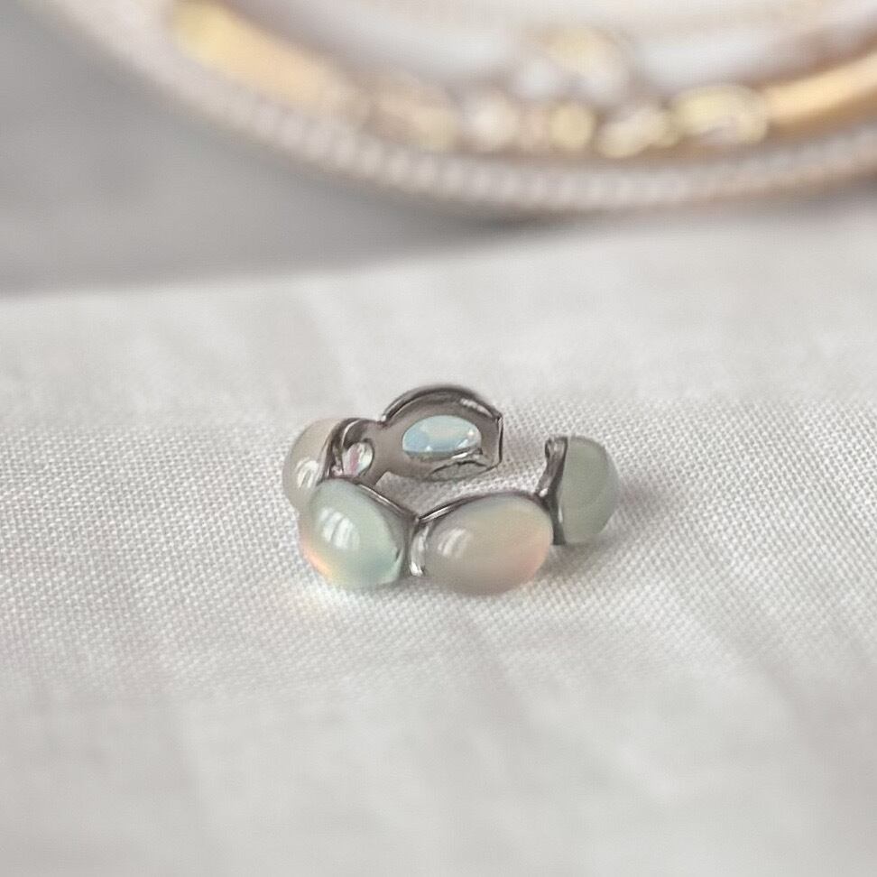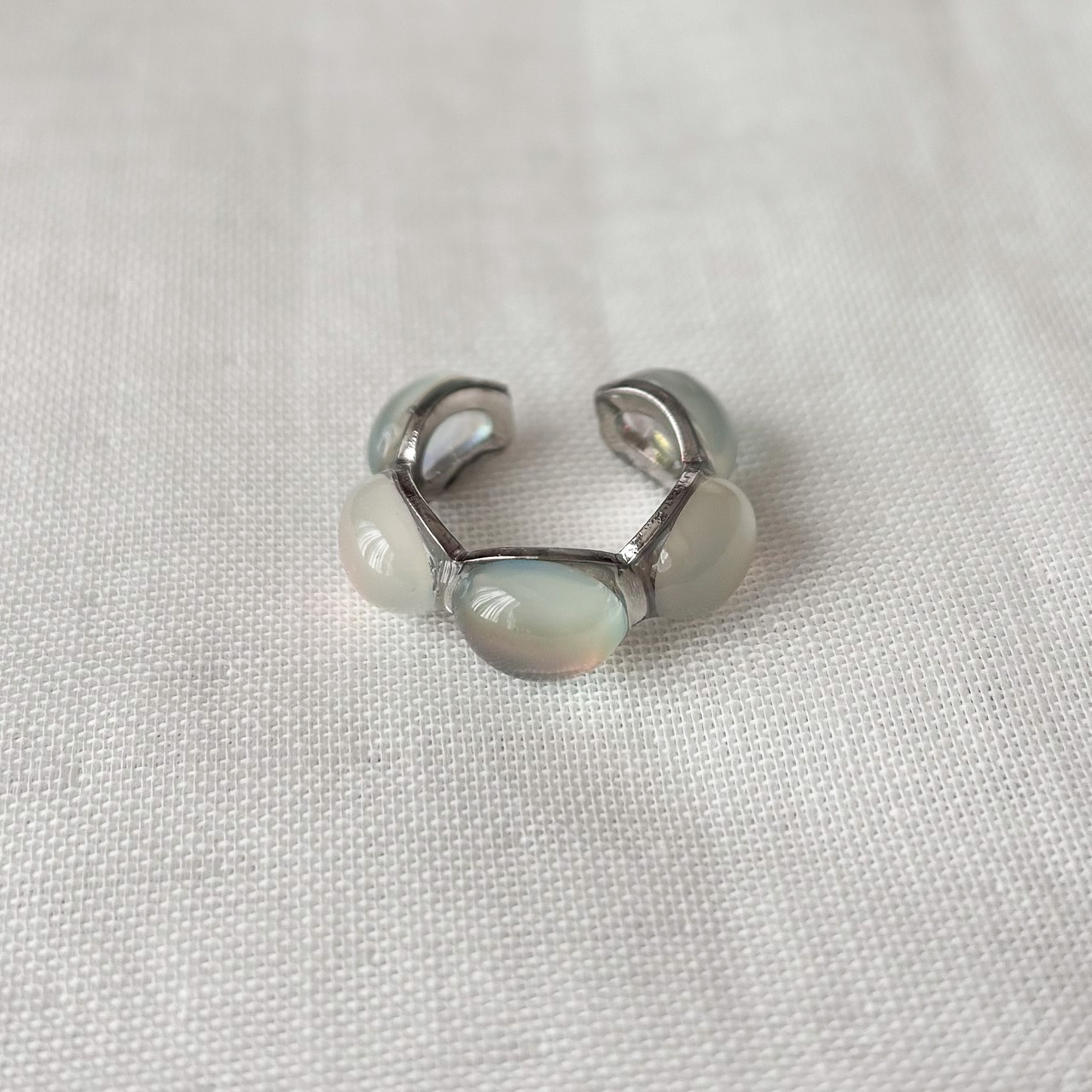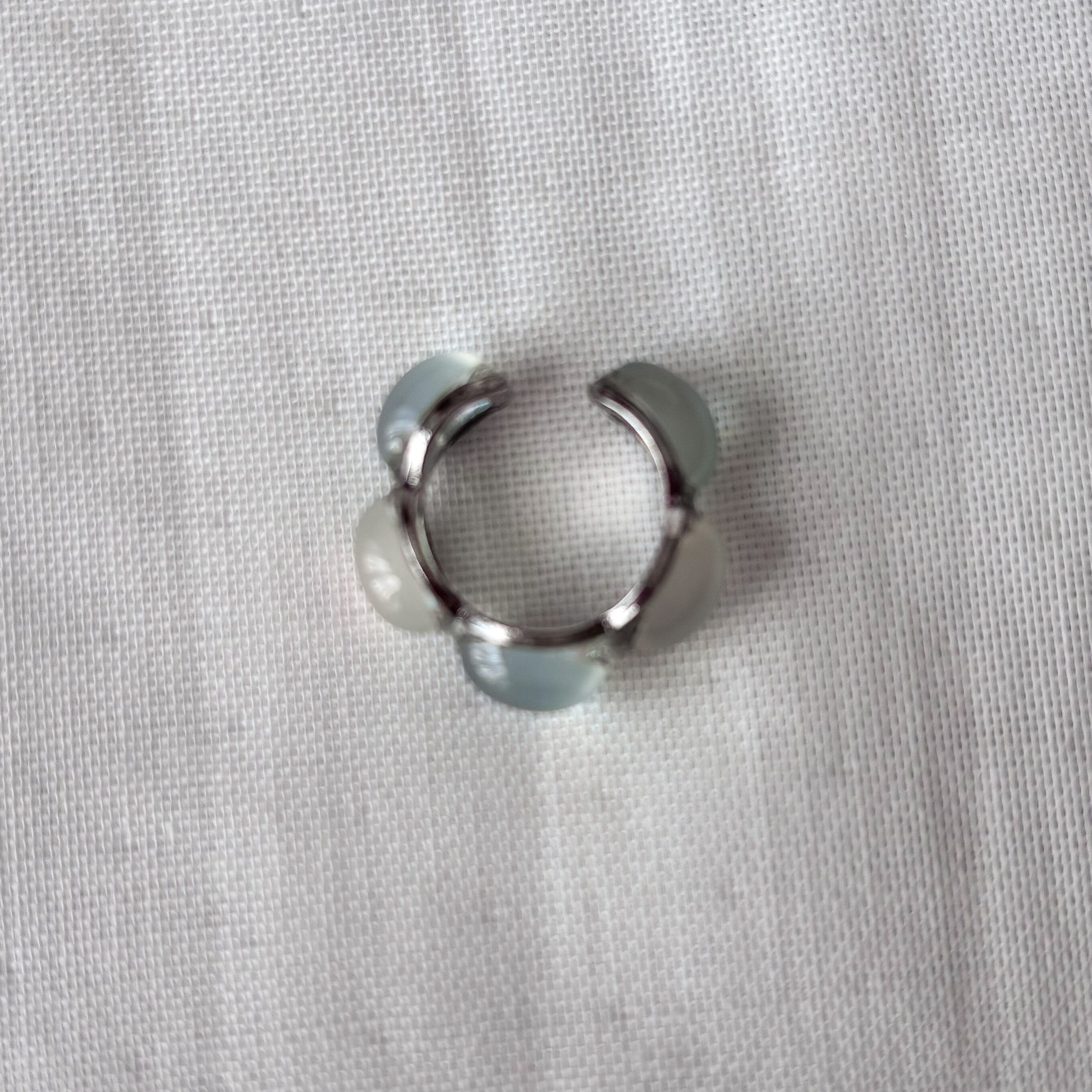 グリーンとホワイトの組み合わせが爽やかに映えるシルバーイヤーカフ。