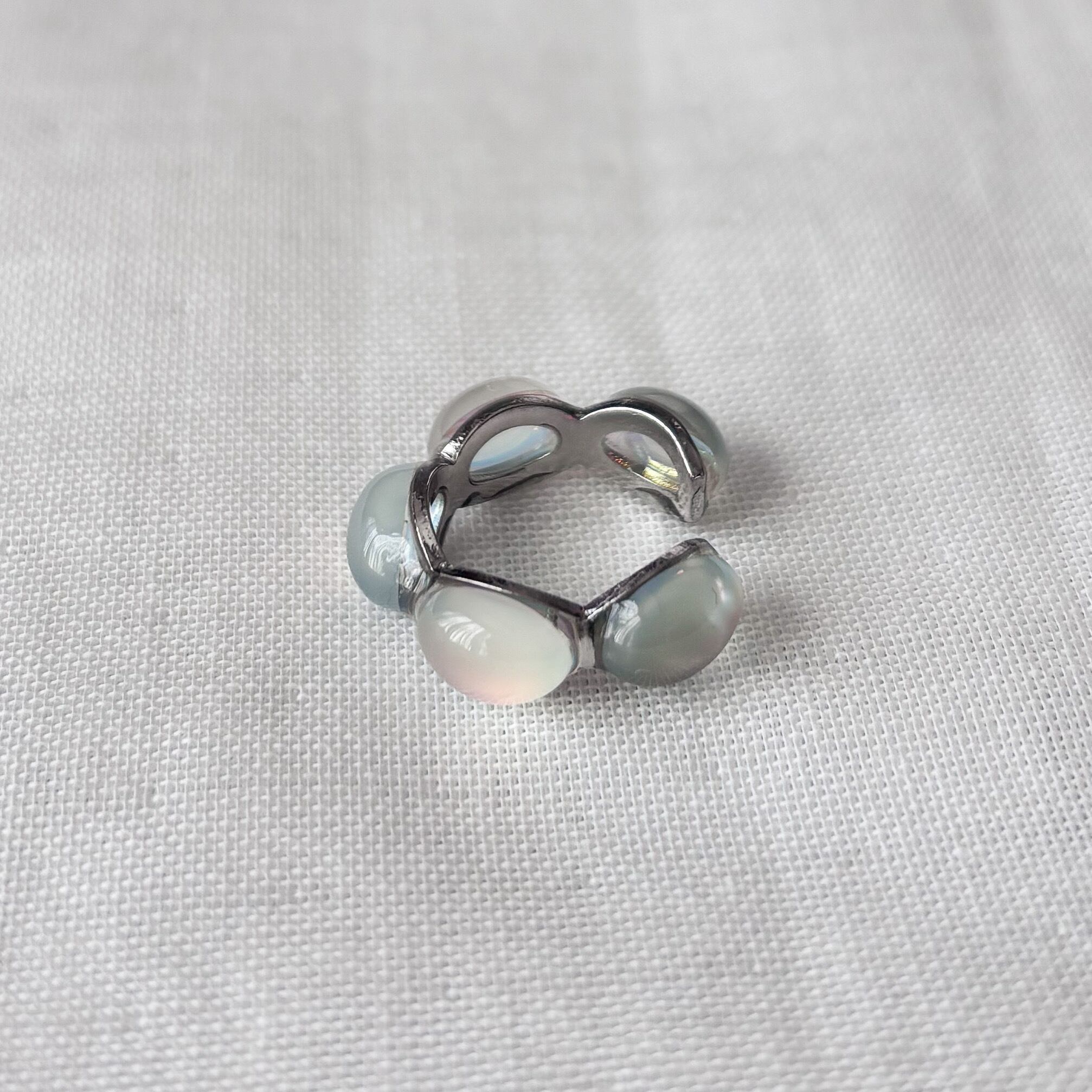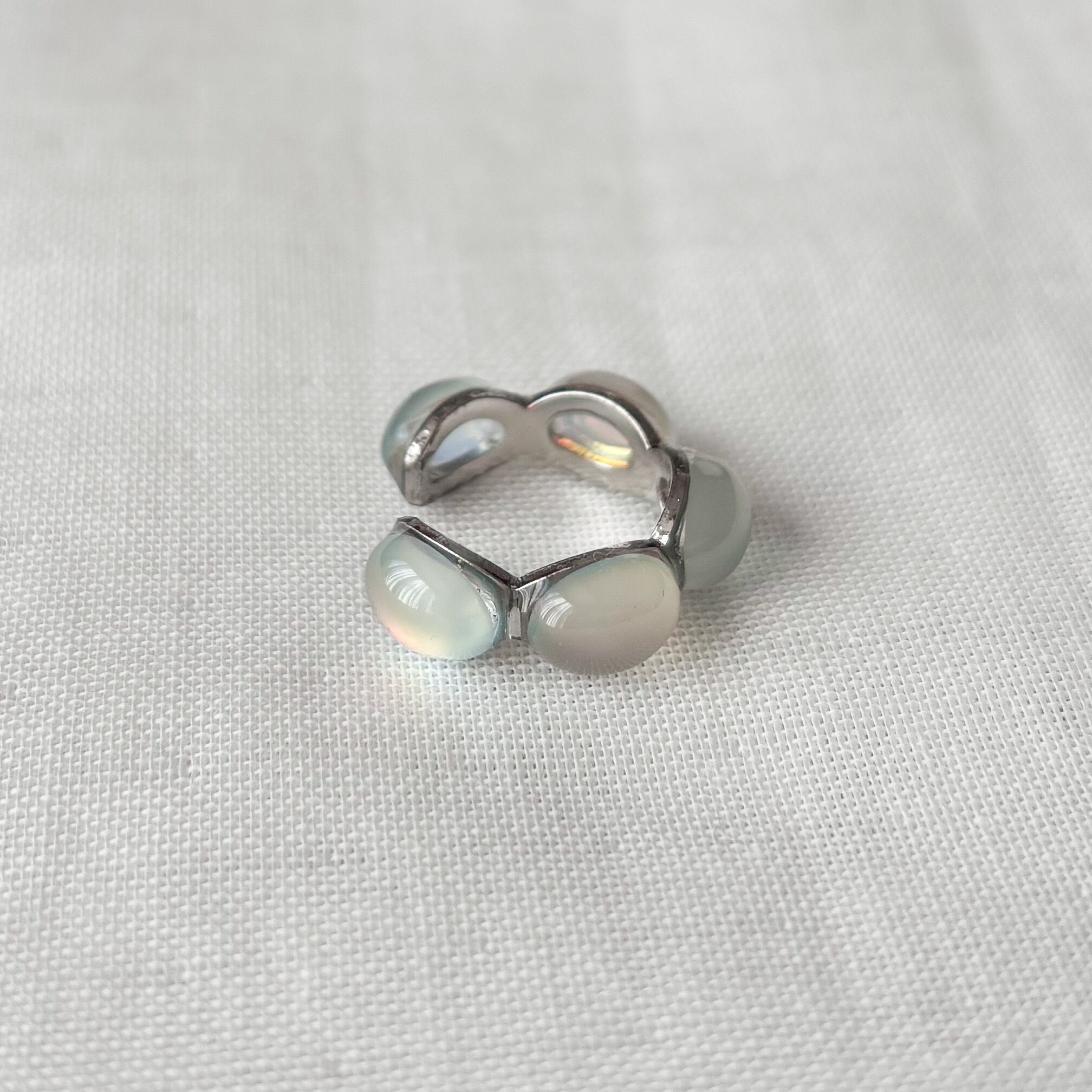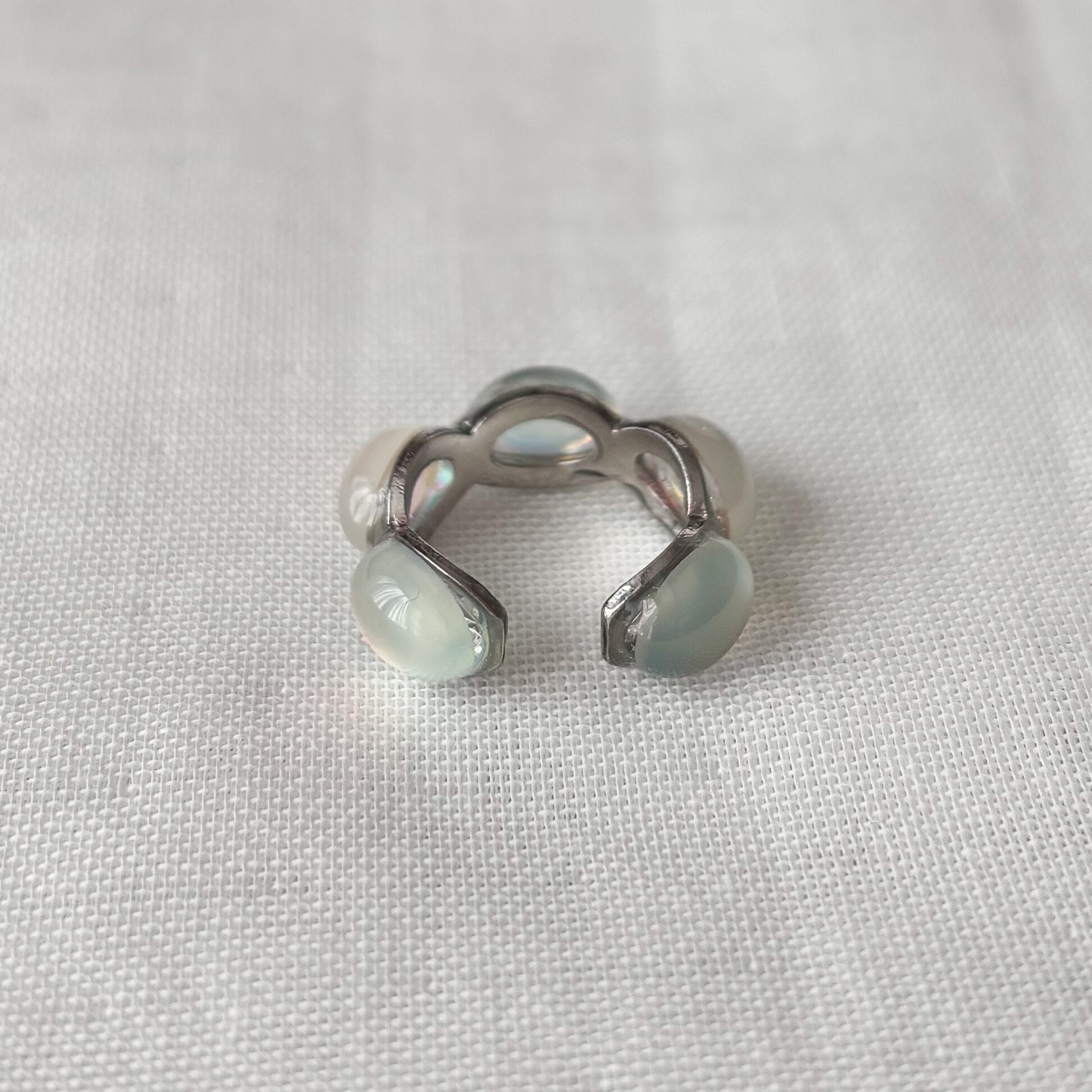 グリーンとホワイトの組み合わせが爽やかに映えるシルバーイヤーカフ。